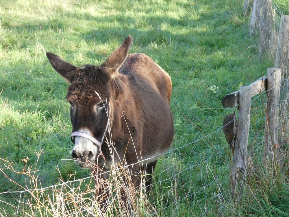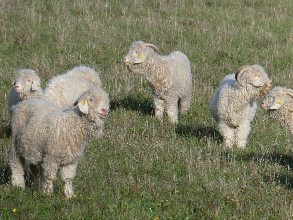 Dans un pâturage en contrebas un troupeau un peu inhabituel attire notre attention : une bonne vingtaine de chèvres angoras paissent paisiblement. Ce sont elles qui nous fournissent cette fibre naturelle si prestigieuse : le mohair !