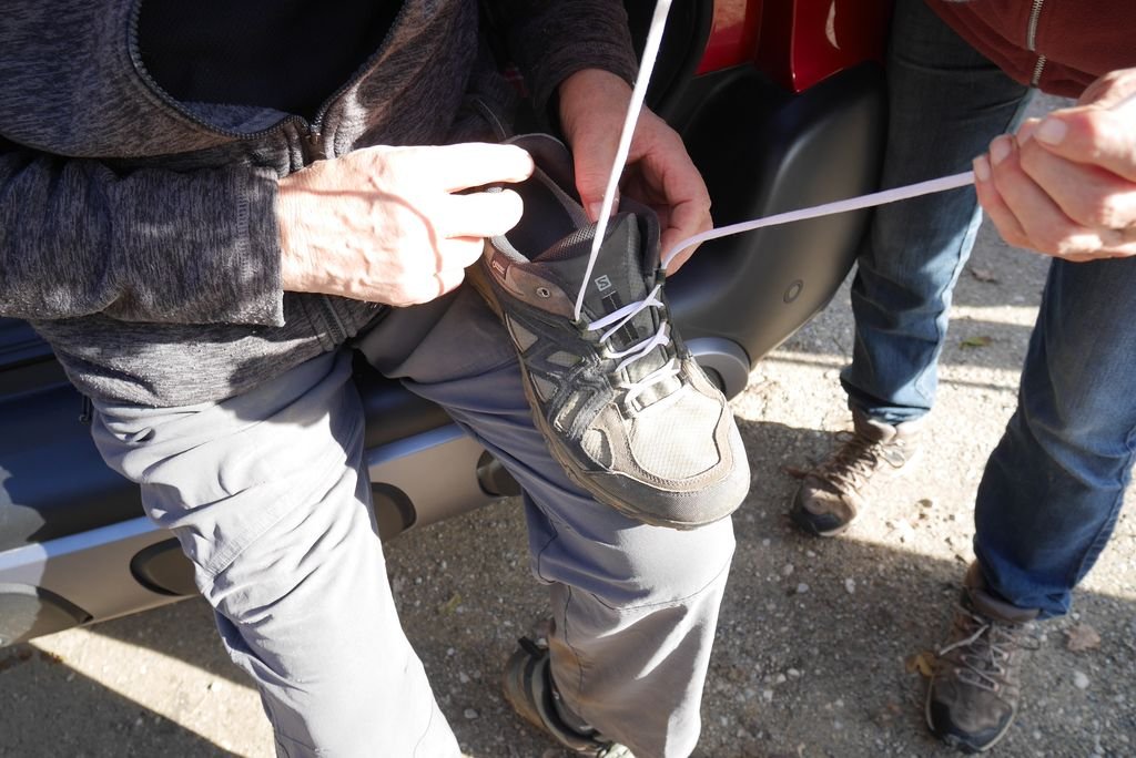 Nous partons de l’aire de pique-nique située à la sortie de Mauroux après avoir opéré un changement de lacet de la chaussure de Daniel, le précédent ayant rendu l’âme !