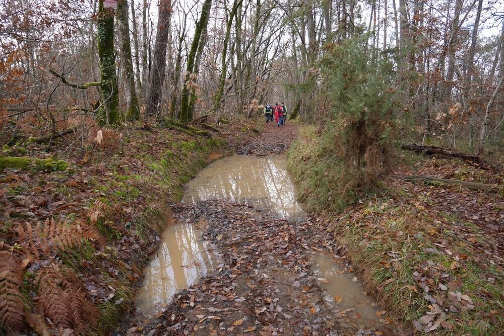 Nous débutons notre circuit en partant plein ouest, gagnant rapidement un chemin en sous-bois. Nous débouchons sur la D28 avant d’emprunter le GR®652 sur un peu plus d’un kilomètre.