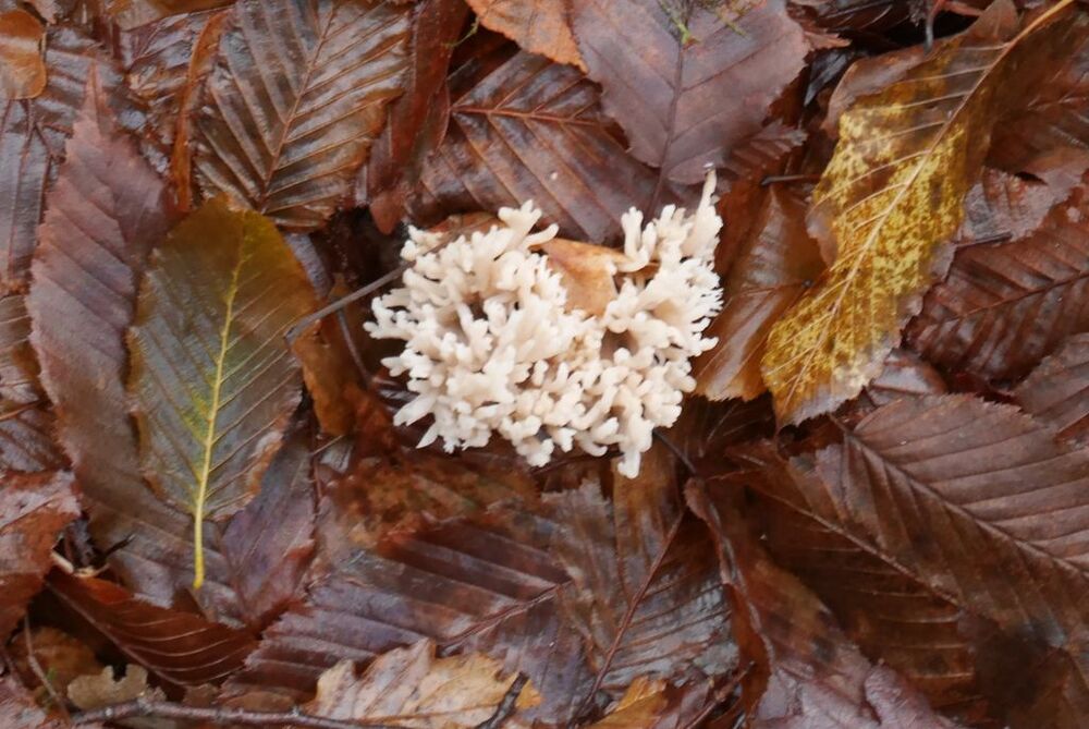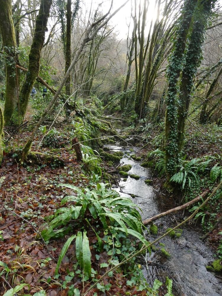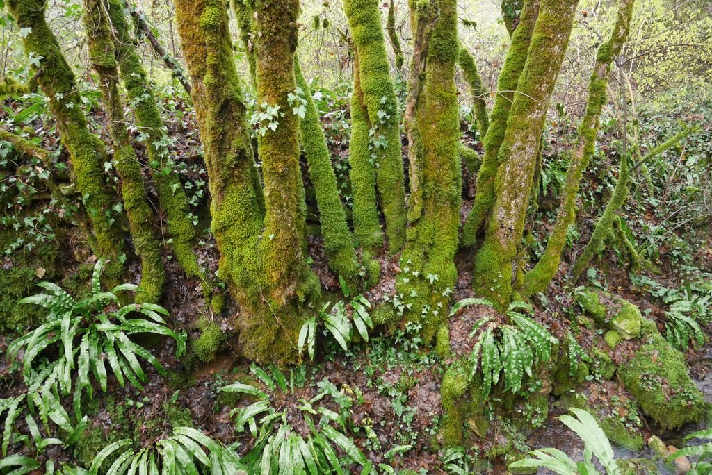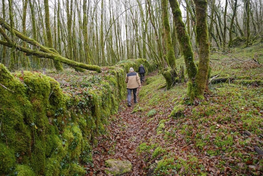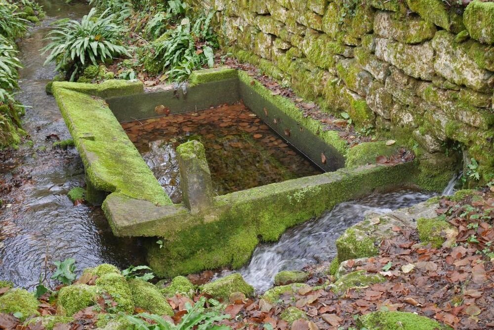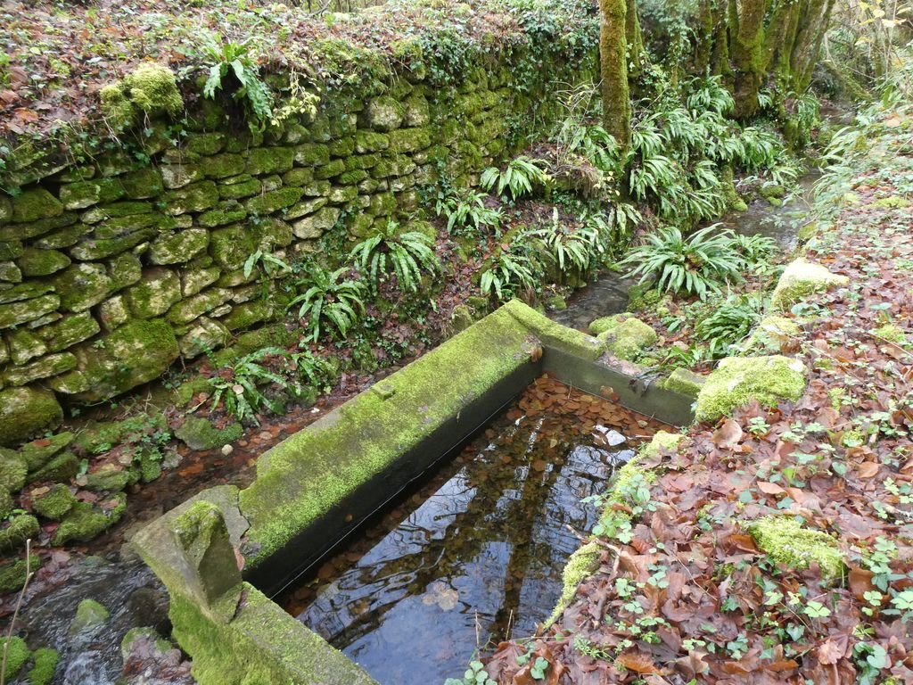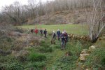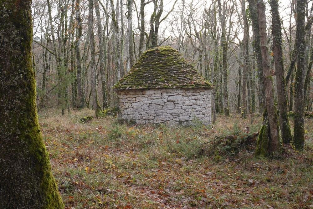 Après l’avoir quitté nous nous dirigeons plein nord et arrivons à Mazières, commune de Montcabrier. Par un chemin recouvert d’un tapis de feuilles de châtaigniers nous descendons jusqu’au captage de la source au pied de laquelle se trouve un lavoir entouré d’une multitude de fougères. Nous entrons ensuite dans le fond du Ravin de Lanau ! Nous le remontons en suivant le magnifique chemin creux bordé d’un muret de pierres moussues, et ouvert grâce au travail de nettoyage accompli par nos camarades « Copines et Copains des bois ».