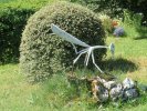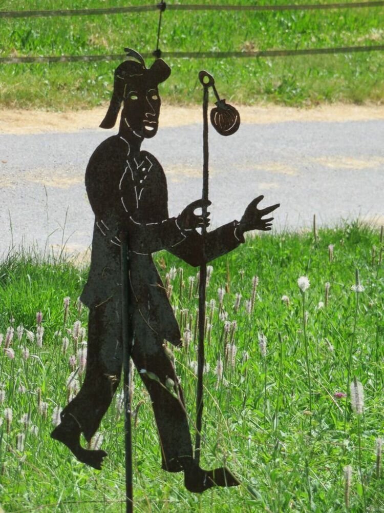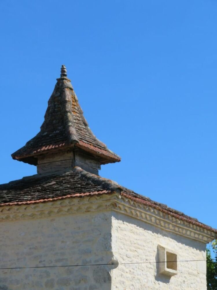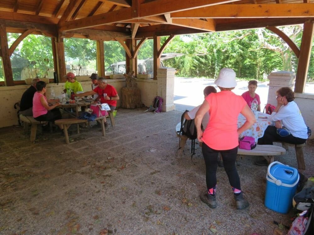 Continuant notre chemin cap à l’ouest, nous admirons les bas-côtés fleuris de la ferme des Jouaninet, couverts de roses odoriférantes, longeant des champs de melons, millets et tournesol, témoins de la prédominance agricole de ce territoire, avant d’entreprendre la descente par une sente ombragée vers Saint Alauzie, où la petite halle couverte jouxtant la mairie, nous accueille pour la pause méridienne.
