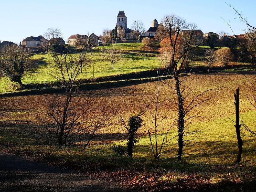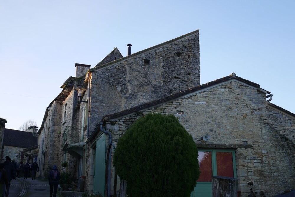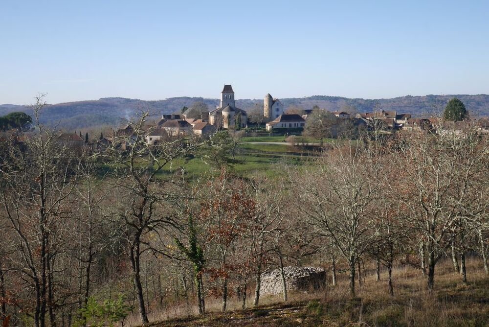 Nous montons jusqu’à une intersection et partons sur la route de Tronquière où s’offre à nous un beau panorama : la métairie de Lesquirol et la bâtisse de Gary se détachent dans cette campagne fort bien cultivée. . Peu à peu, quelques maisons apparaissent et après une croix et une descente dans la nature , le village des Arques dressé sur son éperon rocheux impose ici un arrêt afin d’admirer ce site. C’est au Moyen – âge ( XI- XII e s)que le village s’est développé autour d’ un prieuré bénédictin dépendant de l’abbaye de Marcilhac- sur- Célé dont il reste aujourd’hui l’église St Laurent et la tour du Doyen . Dans la 2eme moitié du X Vs , grâce à la venue de Pyrénéens et d’’Auvergnats, l’industrie du fer a permis un croissance certaine. Toutefois ce lieu connut bien des déboires : au milieu du XVI s , les Huguenots commirent de nombreux massacres en Bouriane. Un siècle plus tard, suite à des révoltes paysannes, l’armée royale fit détruire les murailles du prieuré. Néanmoins, au XIXs la canalisation de la Masse et la construction de ponts facilitèrent les communications .Ainsi des relations commerciales se mirent en place notamment depuis le port de Castelfranc .