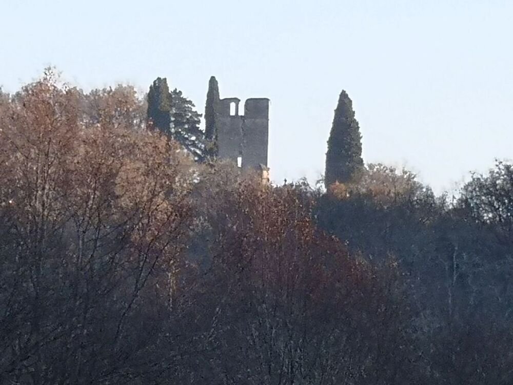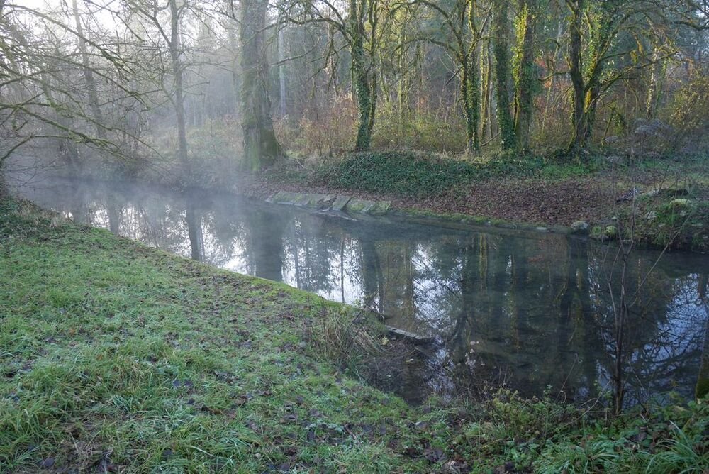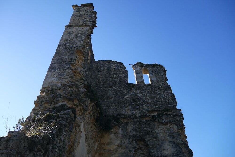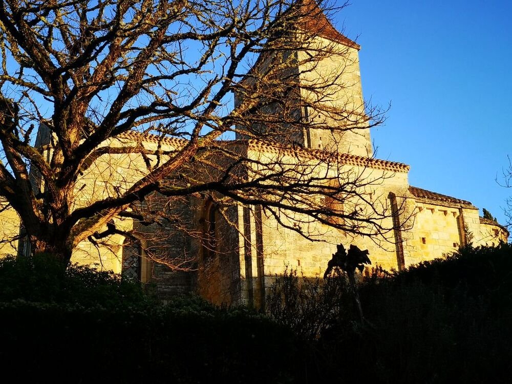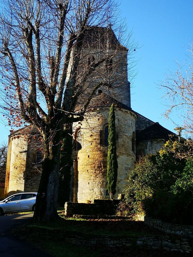 Dans la descente , après un ancien séchoir à tabac, un chemin enherbé bordé de murs en pierres sèches nous conduit à une croix et au ruisseau du Divat . Celui-ci témoigne d’une présence gauloise, dérivant de Divona, déesse des eaux. D’ailleurs, un ancien lavoir et la retenue d’eau d’un moulin attestent de l’humidité des lieux ( tout près, zone humide protégée) . Quittant cette petite route, nous nous engageons dans les bois et bientôt , sur notre gauche se dressent les silhouettes de l’église des Arques et de la tour du Doyen ainsi que, sur le pech de Ladoux , les vestiges de l’ancienne église St Martin en ruine dont les pierres ont permis de restaurer l’église actuelle entre 1803 et 1819.