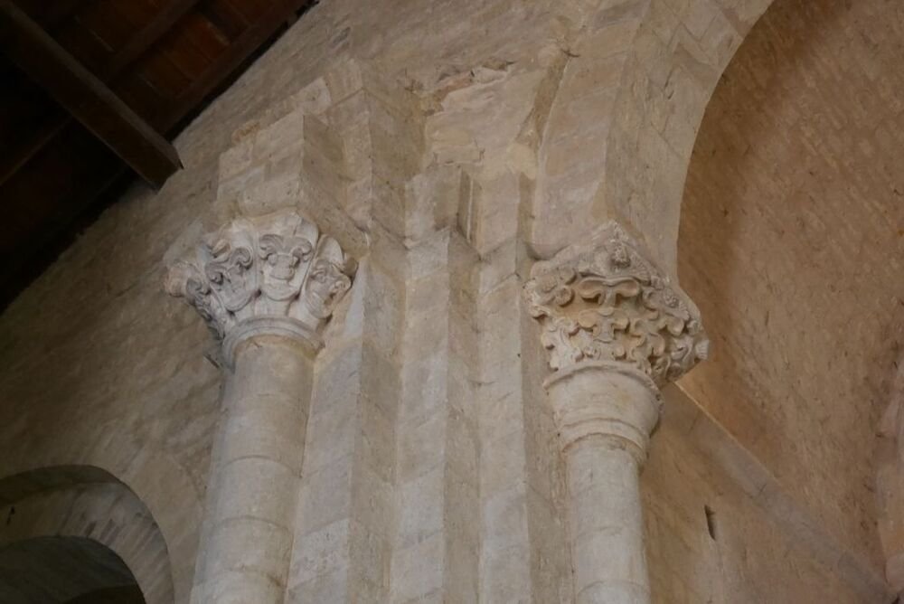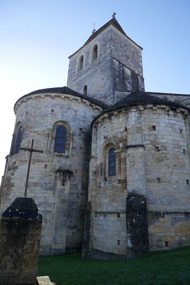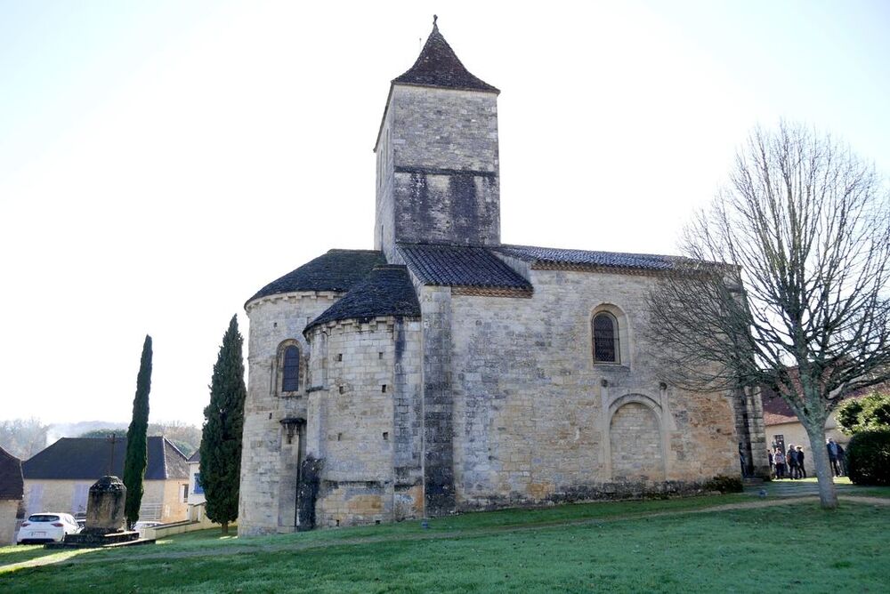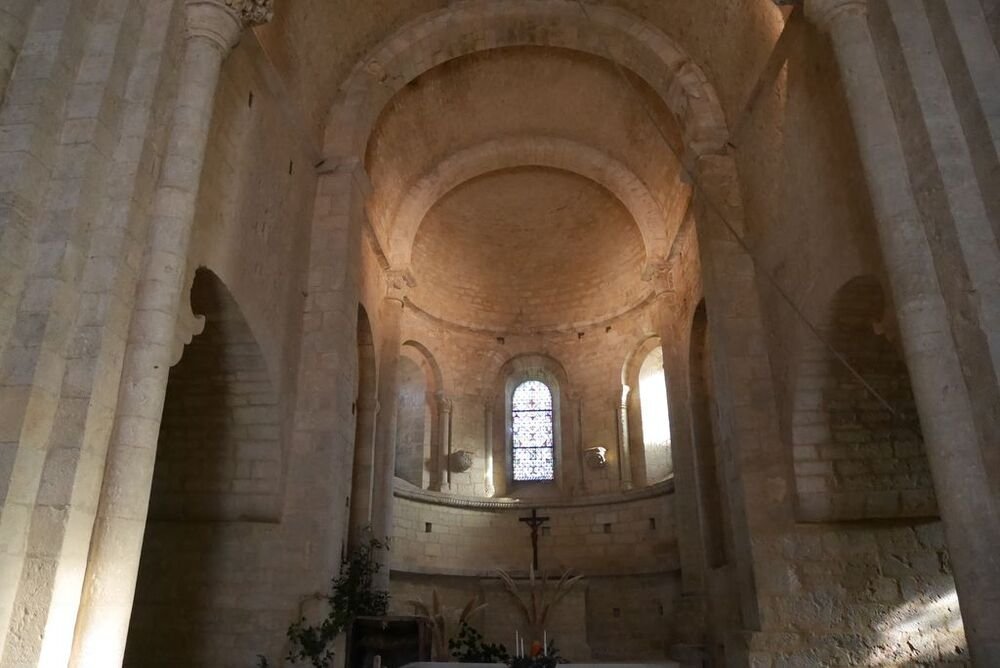 Nous descendons au pied du village puis remontons jusqu’ à l’église St Laurent et à la tour du Doyen , vestiges de l’ancien prieuré doyenné ( XIIe- XIIIe). Nous entrons dans ce bel édifice roman qui, grâce à des campagnes de restauration a retrouvé la pureté de l’art roman . De cette époque, il ne reste que le chevet du XIIes ; celui-ci est composé d’une abside et de 2 absidioles semi- circulaire en cul-de-four .Dans les embrasements des petites fenêtres , on aperçoit des chapiteaux ornés de palmettes et de feuillages.