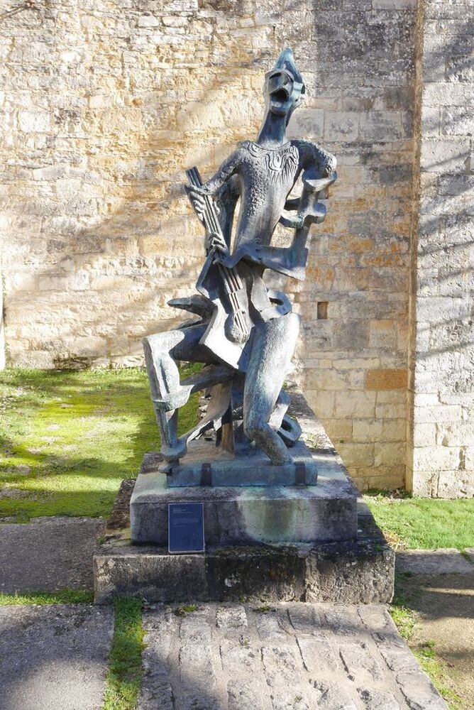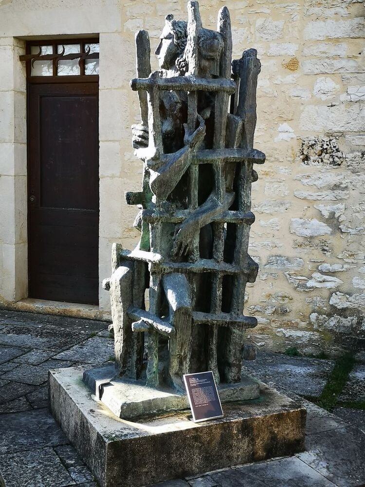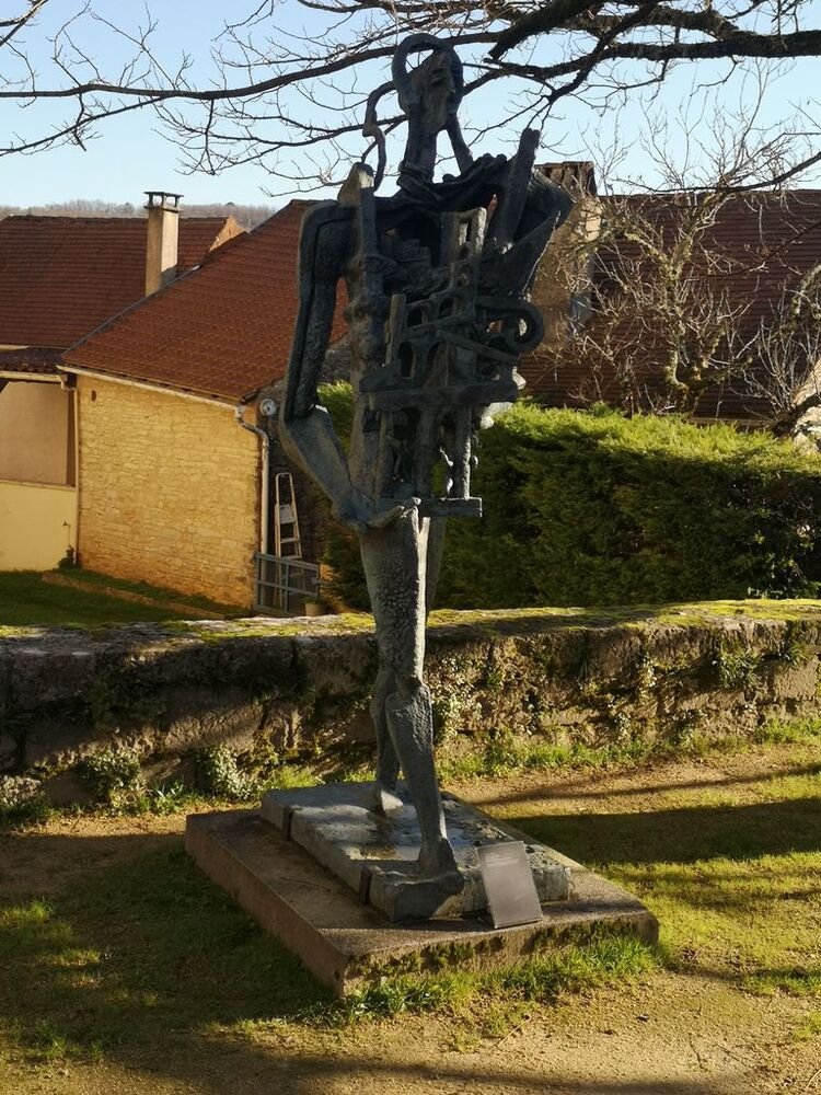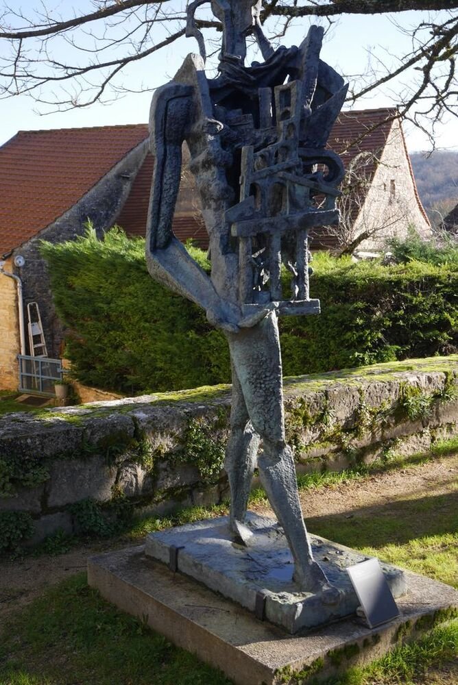 En ce matin d’hiver, nous voici en pays bourian ,dans le beau village des Arques que nous traversons en appréciant le calme et l’harmonie architecturale des pierres ocrées. Arrivés près de la place de la mairie, nous prenons une ruelle et passons devant la maison d’ Ossip Zadkine ( 1890- 1967), sculpteur cubiste qui vécut ici de 1934 à son décès avec son épouse Valentine Prax ( 1897 – 1981). Profondément attaché au Quercy et à ce village, il a marqué de son empreinte le patrimoine local.