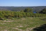 Remontant plein nord, nous arrivons au point culminant de notre randonnée à la Croix du Girard à 275 m, avec vue sur le clocher de Cénac et au loin les ruines du château de Belaye, de là nous accédons à la garriotte surplombant le domaine viticole de Château Eugénie, complétée depuis cette année par une imposante table de pierre.