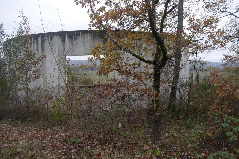 Passant devant la carcasse en béton d’une construction inachevée, éphémère maison des vins, (qui aurait eu la forme d’une gigantesque barrique dixit notre animatrice), nous longeons les vignes du château Haut-Montplaisir, retrouvant un chemin carrossable au lieu-dit « Gaillard ».