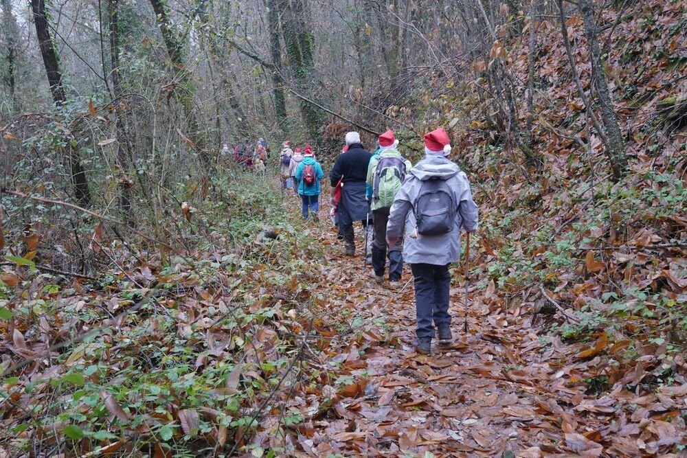Effectif record pour notre traditionnelle randonnée de Noël suivie de son goûter dans la salle des fêtes de Touzac gracieusement prêtée par la municipalité, 27 participants (antes) dont 3 bénévoles de Touzac qui sont à l’origine de la création de ce circuit dénommé « Les Combettes » du nom du petit ru que nous emprunterons sur la fin de notre circuit.