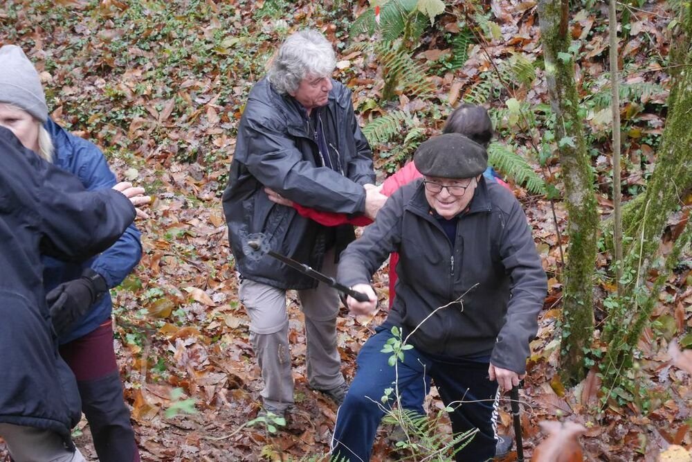 Suivant avec prudence (nombreuses pierres et gours) le lit asséché du ruisseau sur 800 m, nous débouchons au lieu-dit Le Roc, non loin du centre bourg et de la salle des fêtes où nous attend un délicieux goûter amoureusement concocté par Huguette (papillotes, café et chocolat chaud, mandarine, gâteaux…).