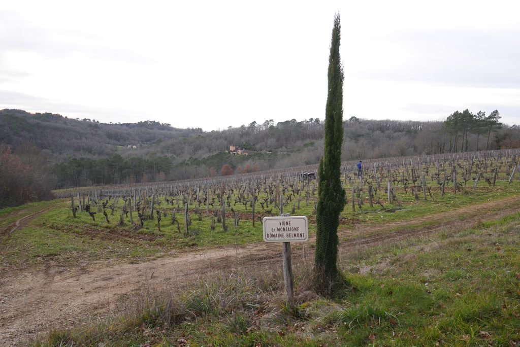 Retrouvant la combe boisée, par une rude montée, nous rejoignons le lieu-dit Falipot, descendons par une tournière le long des vignes du domaine Belmont avant de remonter cap au nord, remarquant au passage, une yourte au toit fumant, un four de potier et le fameux lavoir de 1926, fruit de la coopération des propriétaires riverains ainsi que le mentionne la dédicace gravée sur ses murs.