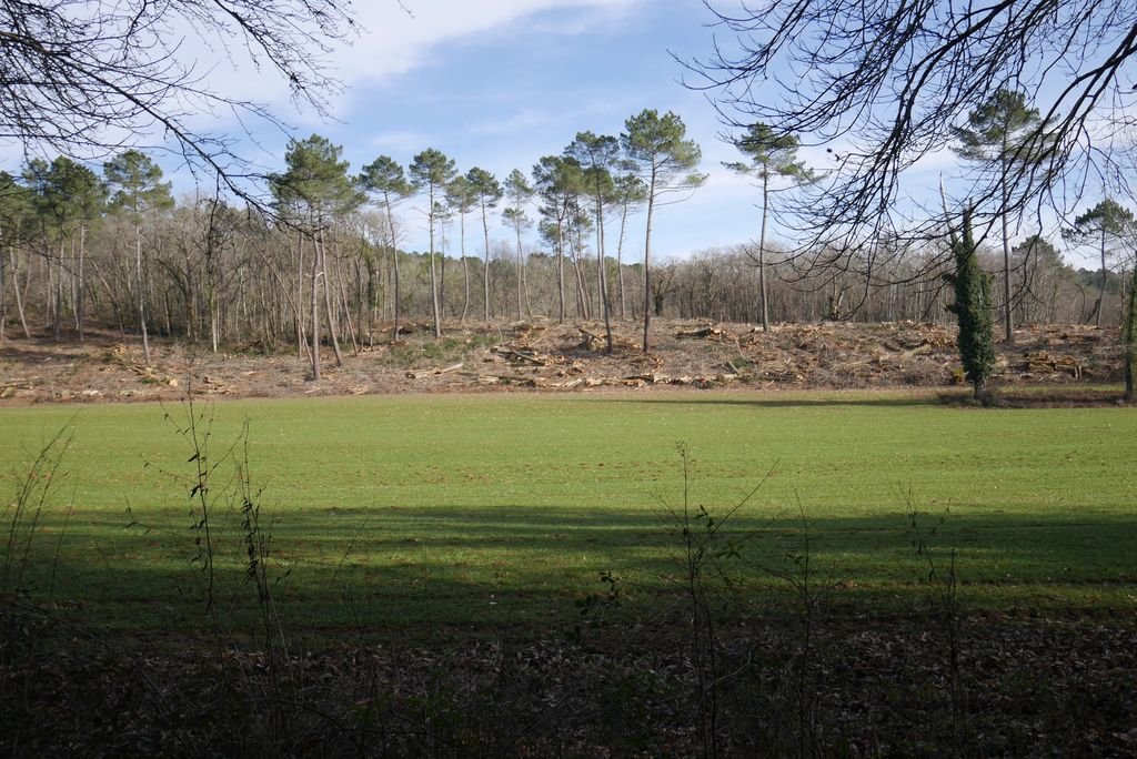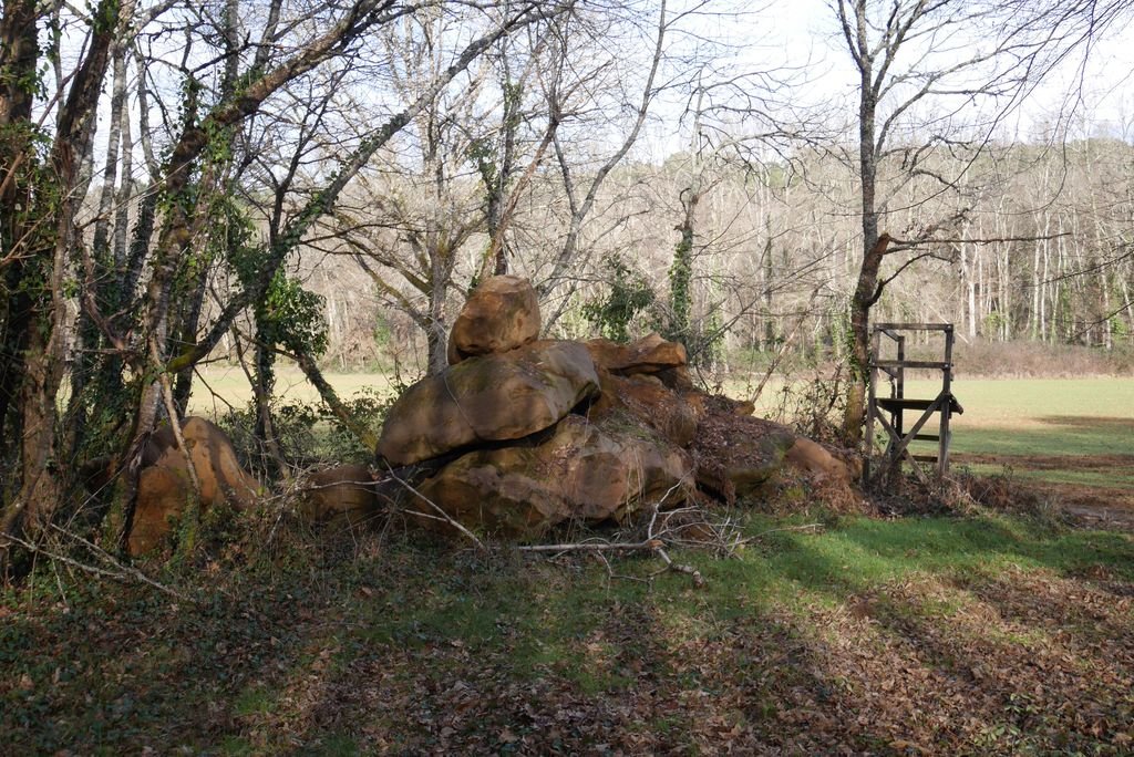 Nous dirigeant nord-ouest, nous dépassant la grande propriété de Fargou, avec son pigeonnier et ses granges immenses, hélas à l’abandon, puis nous empruntons une sente dans des bois de pins et châtaigniers avant de prendre le chemin carrossable de Magat en limite avec la commune de Lherm.