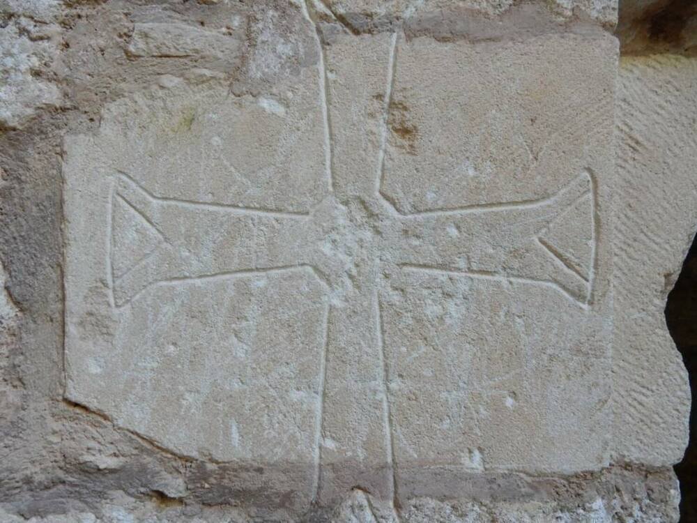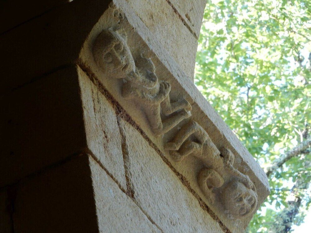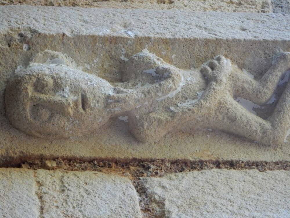 Erigée en bel appareil de moellons calcaires, la nef adoptait un plan simple, de forme rectangulaire, à l’origine coiffée d’une charpente et percée à l’ouest d’un étroit portail dont il subsiste encore les bases. Elle était séparée du chœur par l’arc triomphal encore en place, bordé d’une archivolte ornée de billettes et de deux impostes sculptées. Sur le pilier droit, deux personnages de facture naïve sont représentés nus, dans une position allongée, imposée par la forme du support. L’un porte une main à hauteur de l’oreille, l’autre une main à la gorge, et de sa main droite dissimule sa nudité. Faut-il penser à une représentation schématique d’Adam et Eve ? L’abside semi-circulaire est éclairée par trois étroites fenêtres en plein cintre logées dans des embrasures profondes. On y voit aussi une pierre portant une croix pattée.