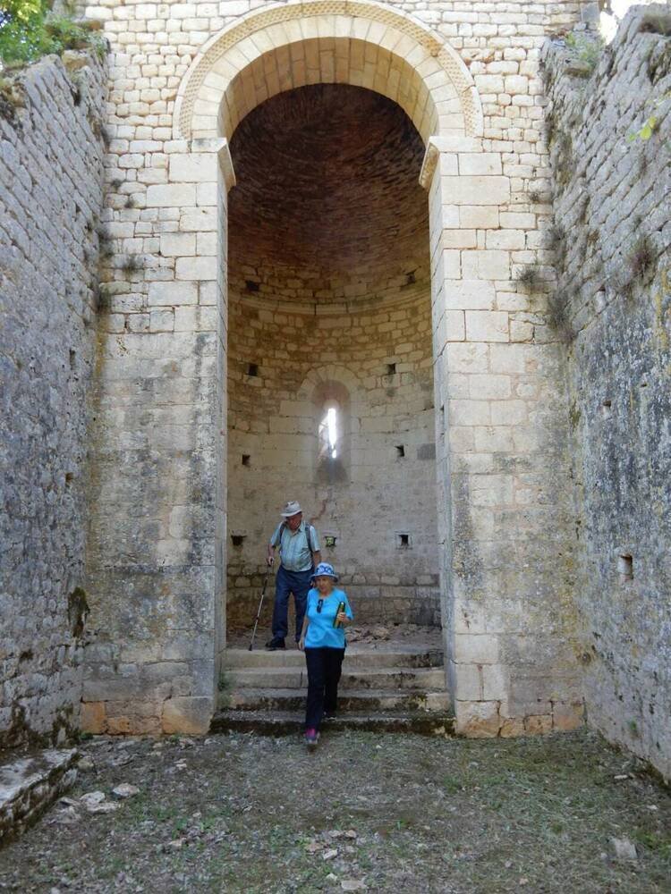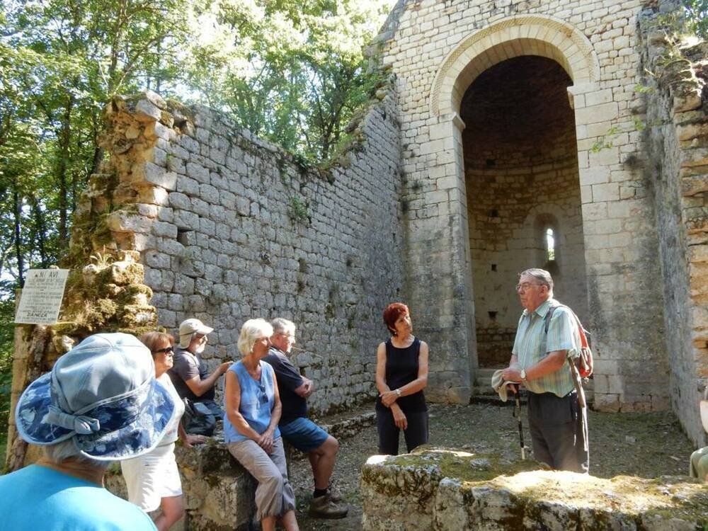 Serge, notre référent culturel, nous a rappelé l’histoire de cette église qui desservait autrefois un bourg de plus de 200 âmes. Isolée au cœur d’un bois de châtaigneraie, elle rappelle l’existence au Moyen Age d’une ancienne paroisse de la communauté de Duravel, désertée lors de la guerre de Cent Ans.