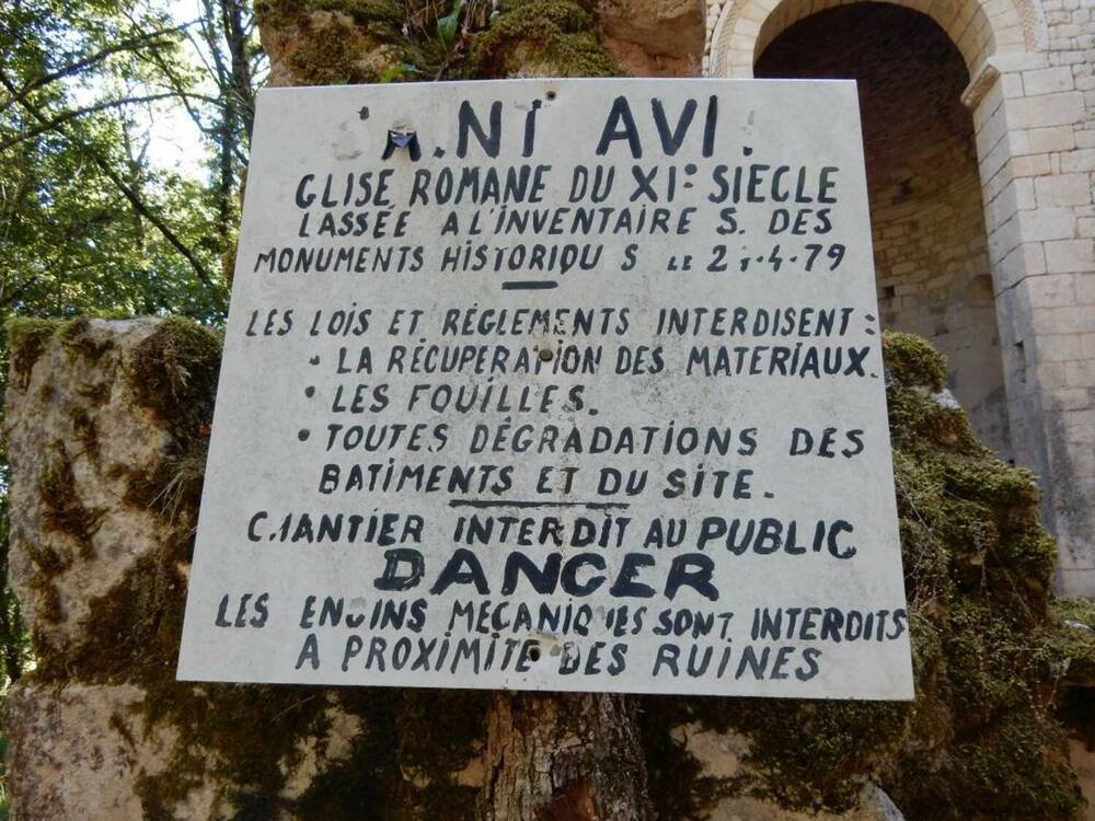 Son origine est liée à une source guérisseuse : selon la légende, Saint-Avit guérissait les maladies de peau des enfants. Les parents déposaient les vêtements de l’enfant, les laissaient pendant la nuit, et les reprenaient le lendemain. Plus tard, ils se contentèrent de jeter des pièces dans les buissons alentour. L’édifice remonte au XIème ou XIIème siècle, mais les fondations du chœur sont plus anciennes et on a retrouvé dans la nef des pierres de taille mérovingienne du VIème siècle. Ne subsistent plus que l’abside encore couverte d’un cul-de-four et quelques pans de murs de la nef. Un modeste clocher-mur en partie détruit s’élevait initialement au-dessus de l’arc triomphal.