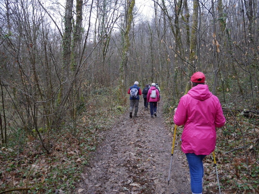 Bien sûr, c’est le maitre incontesté des lieux, Georges Birat, qui avait pour mission de mener la troupe sur ces terres qu’il connait si bien. Les rando-valiens avaient répondu à l’appel et c’est encore une vingtaine de randonneurs qui était présente au rendez-vous de la petite église de Loupiac. Le temps était encore de la partie, et une fois de plus le groupe put progresser au sec, ne subissant pas les caprices de la météo et les giboulées propres à ce mois de mars. Seule la glaise qui collait aux chaussures nous rappelait que les beaux jours ne sont pas encore définitivement installés.