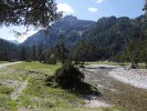 – 4ème jour, mercredi 19 septembre : ça se calme, mais c’est toujours du sérieux ! Notre destination du jour : la superbe vallée du Marcadau avec sans doute les plus beaux paysages du secteur. Dans un premier temps le cheminement est pratiquement à plat, le long du torrent et tout le groupe en profite.