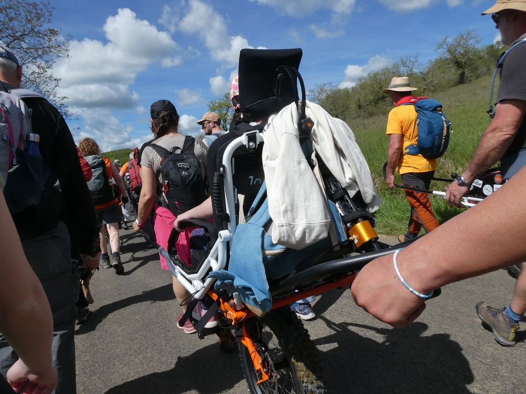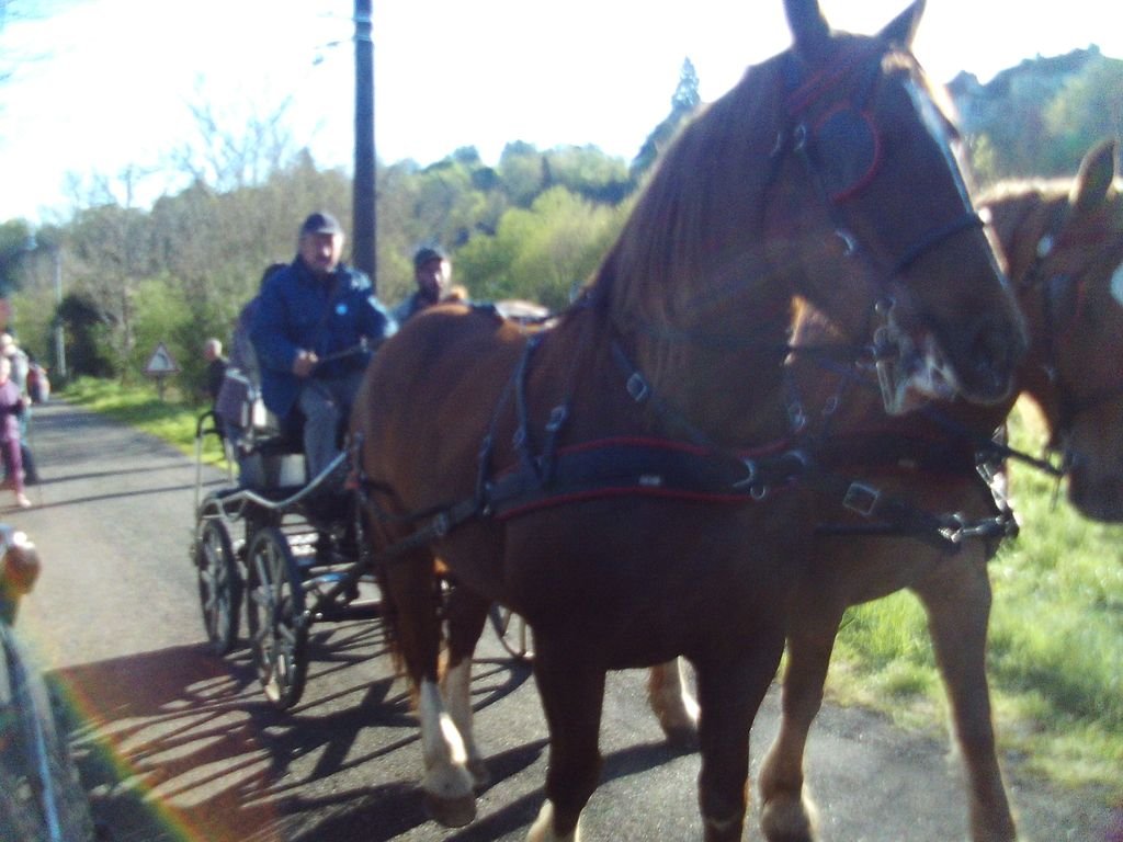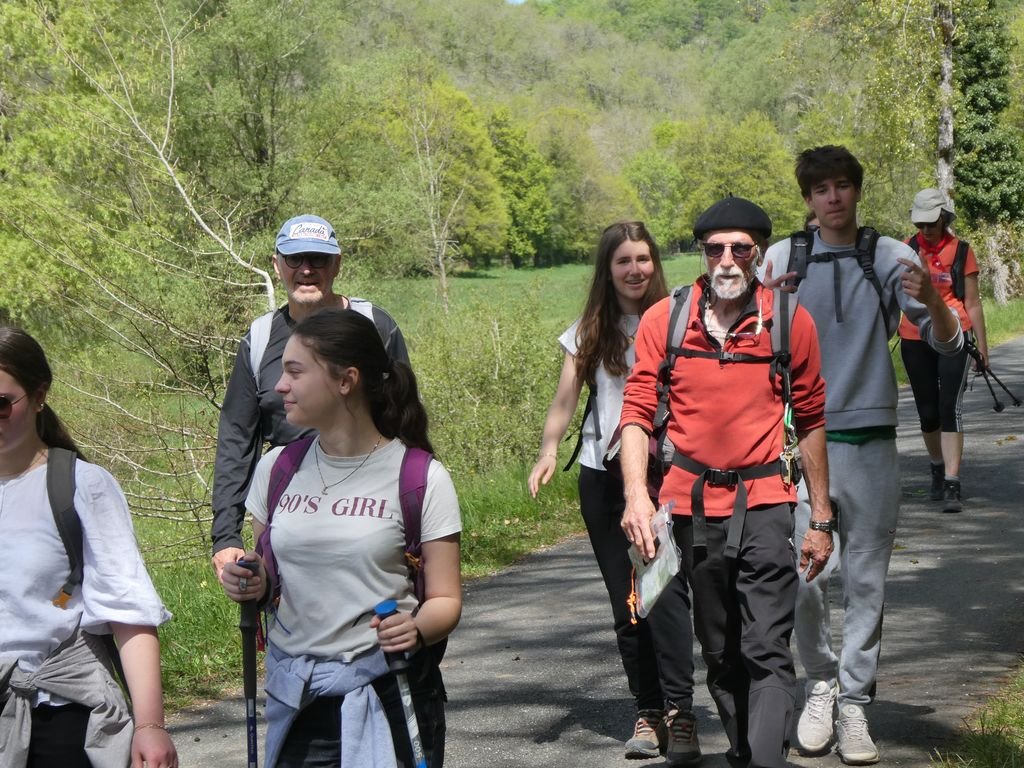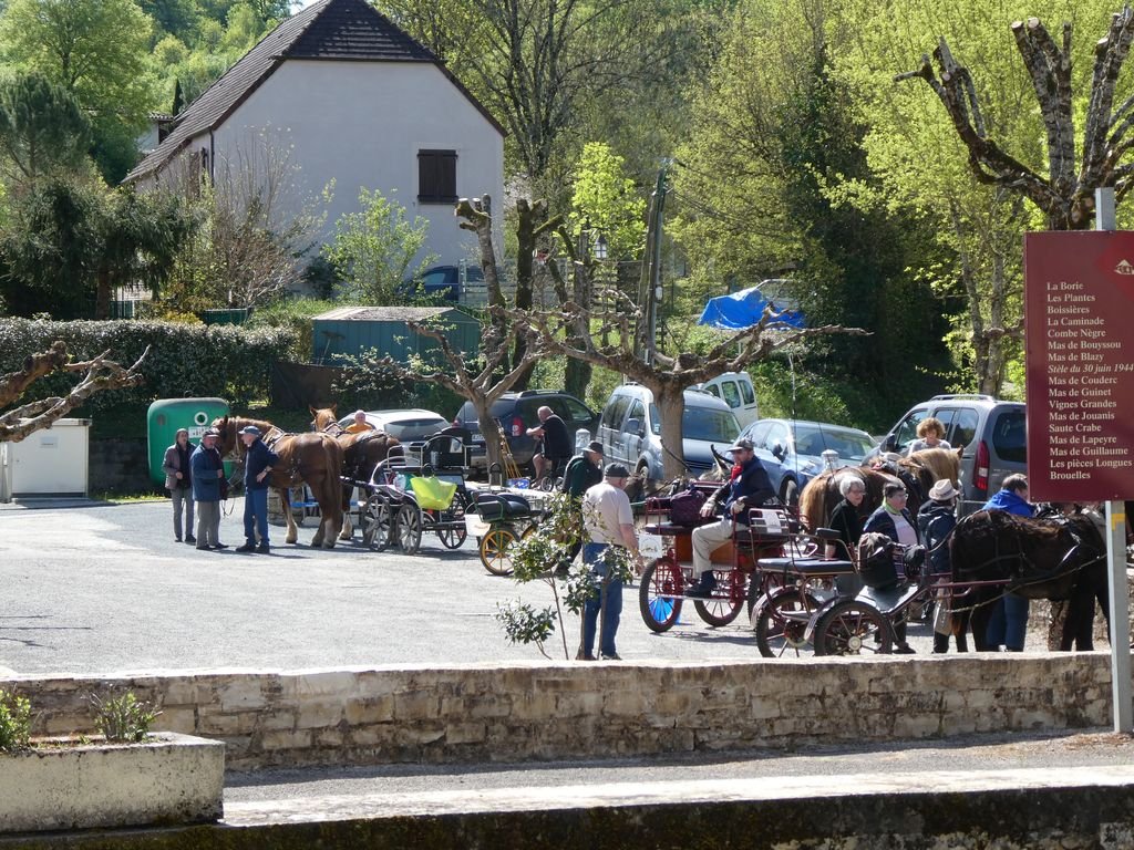 Continuant sur la D 127, notre troupe bigarrée, comprenant jeunes écoliers, randonneurs de tous âges et de tous niveaux, randonneurs canins, joëlettes tirées par des bénévoles, arrive dans le bourg de Gigouzac vers 13 h pour une halte méridienne bienvenue.