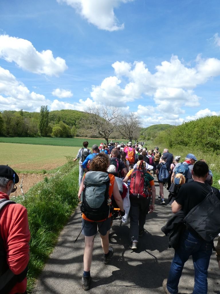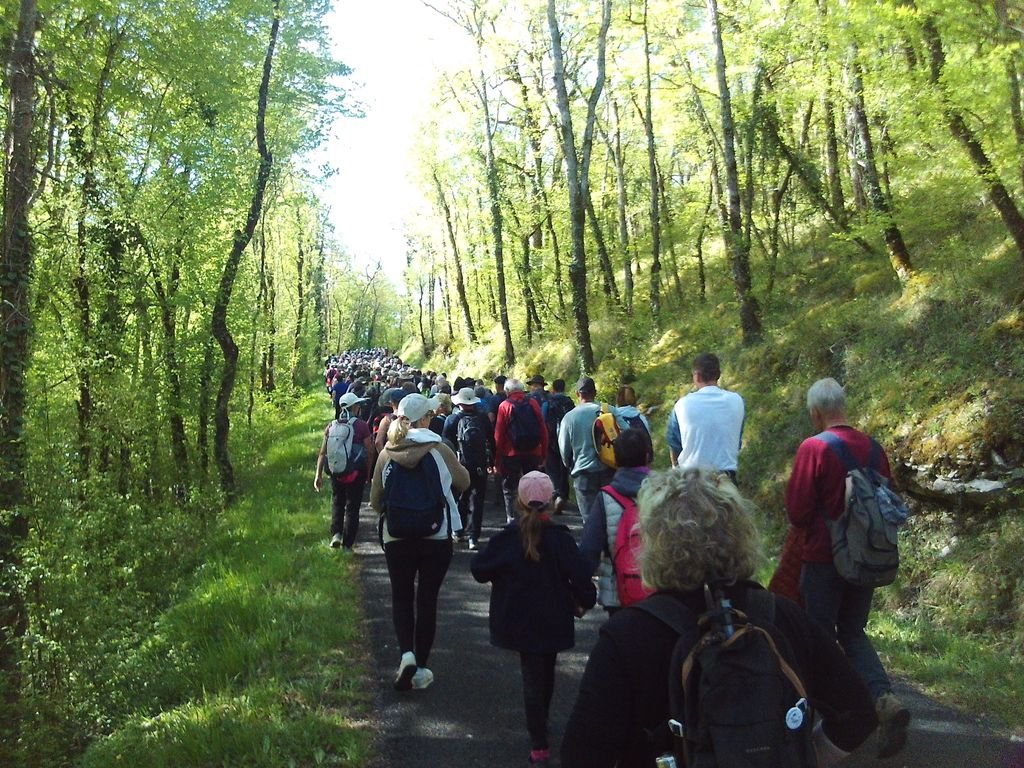 Comme les années précédentes, rando val avait mis à son programme cette 3ème étape reliant Frayssinet le Gourdonnais à Gigouzac, mais compte tenu des contraintes liées au relatif éloignement et sans doute aussi à la répétition de cette même étape, nous nous sommes retrouvés, éparpillés façon puzzle (7 adultes et 2 adolescents en vacances) parmi une foule compacte de plus de 400 marcheuses et marcheurs.