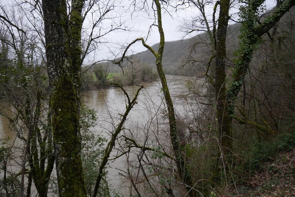 Arrivés à la centrale hydraulique de Touzac baignée pour les eaux tumultueuses du Lot en crue, nous rebroussons chemin sous une fine pluie, pour regagner notre point de départ espérant pour les futures randonnées un temps plus clément.
