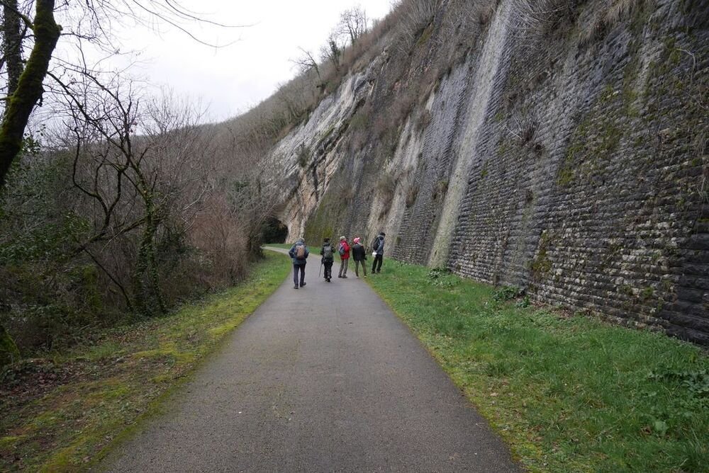Nous nous retrouvons peu nombreux (8) à l’ancienne gare de Duravel, pour arpenter la voie verte, loin des chemins herbeux rendus boueux par les récentes pluies.