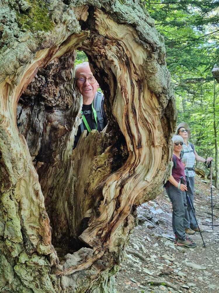 C’est un sentier de découvertes JH Fabre : une pelouse verte, quelques cailloux blancs, c’est un plaisir de fouler cette herbe et nous entrons dans la forêt avec de magnifiques arbres qui nous accueillent et nous abriteront du soleil durant toute la matinée. Tout le long de ce majestueux sentier un peu caillouteux mais sans trop de dénivelés, nous avons pu enrichir notre vocabulaire et notre savoir en lisant les différents panneaux explicatifs concernant la faune et la flore (photos en annexes).