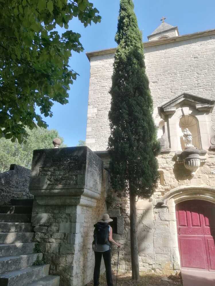 Cette longue marche sur du macadam en direction de la chapelle de Groseau, ancienne abbaye abandonnée par des moines au 16ème siècle avait été fondée à proximité de la source. Il n’a pas été possible de la visiter : la clé qui devait se trouver à gauche de la porte d’entrée n’y était pas !!