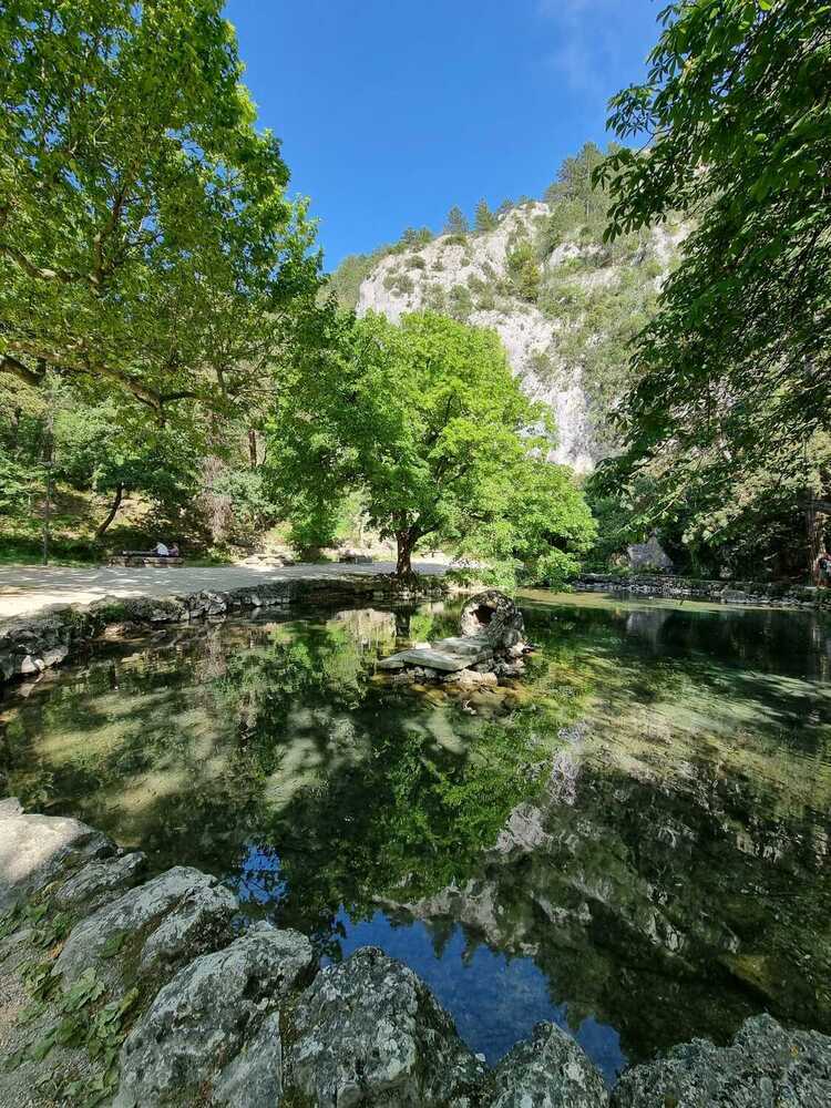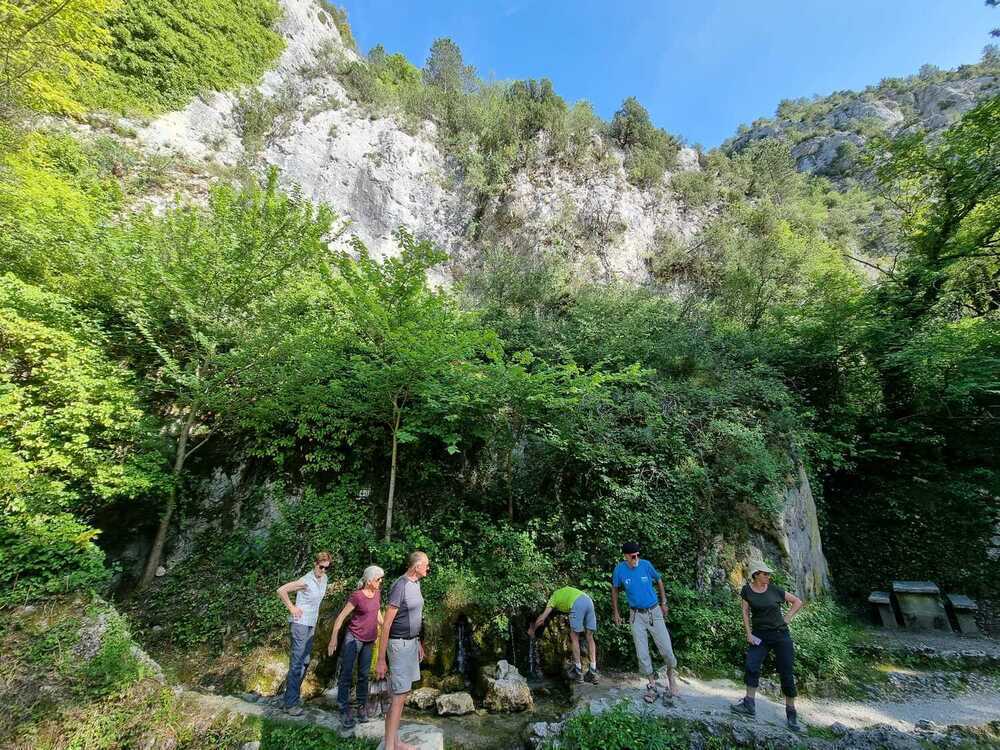 Oh la la ! il est 13:15 et les estomacs commencent à se faire entendre. Il faut redescendre à la source du Groseau qui alimentait Vaison-La Romaine du temps des Romains pour notre pique-nique à l’ombre sur des tables et bancs en pierre.