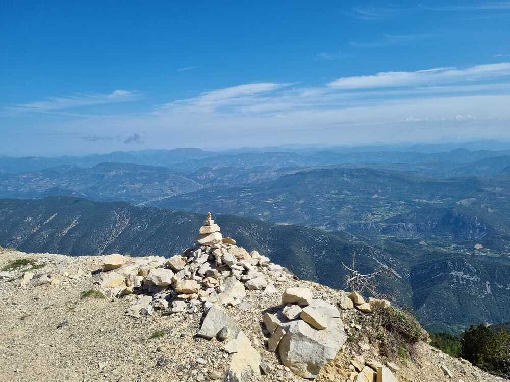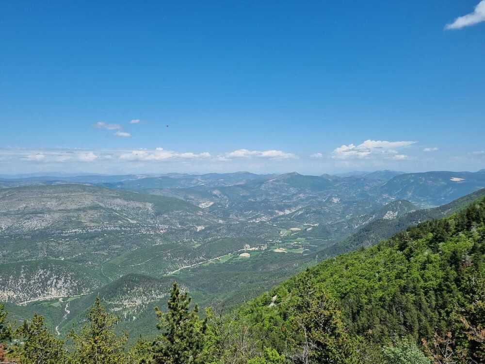 Nous découvrons un point de vue extraordinaire et majestueux, une vue à 180° sur le versant sud des Alpes de Hautes Provence : nous sommes restés bouche-bée tellement le panorama nous paraissait irréel !