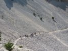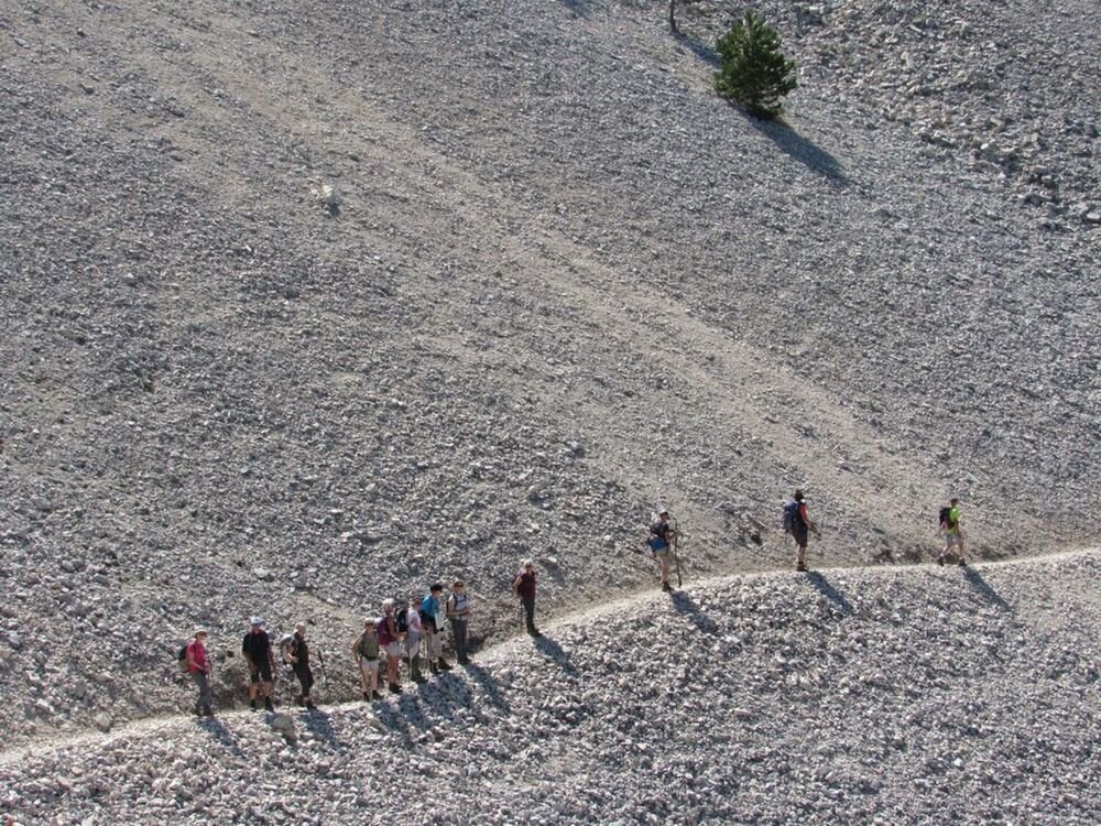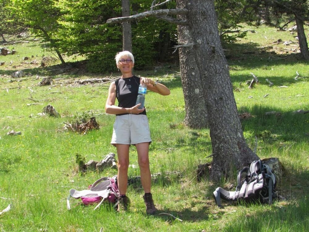 Nous entamons le retour vers les voitures tout en suivant un chemin à l’ombre, ce que nous apprécions. De temps en temps il nous faut traverser des pierriers, et une petite poussée d’adrénaline surgit pour quelques-unes d’entre nous… Mais nous avons des âmes bienveillantes prêtes à nous tendre la main dans ces passages délicats.