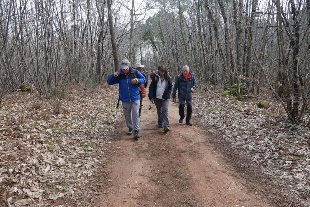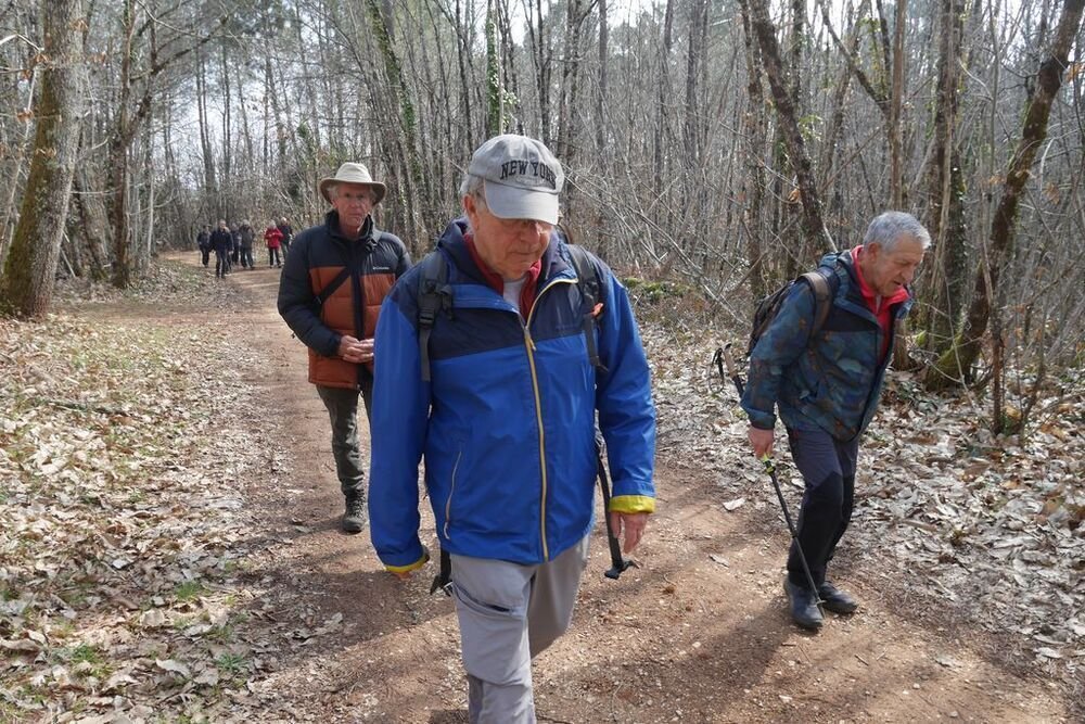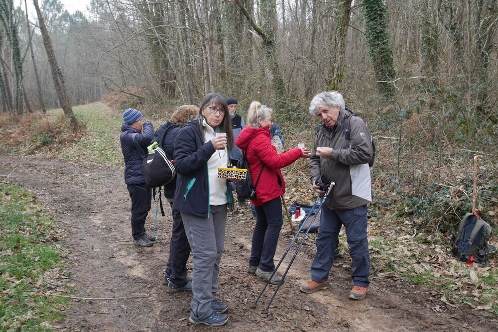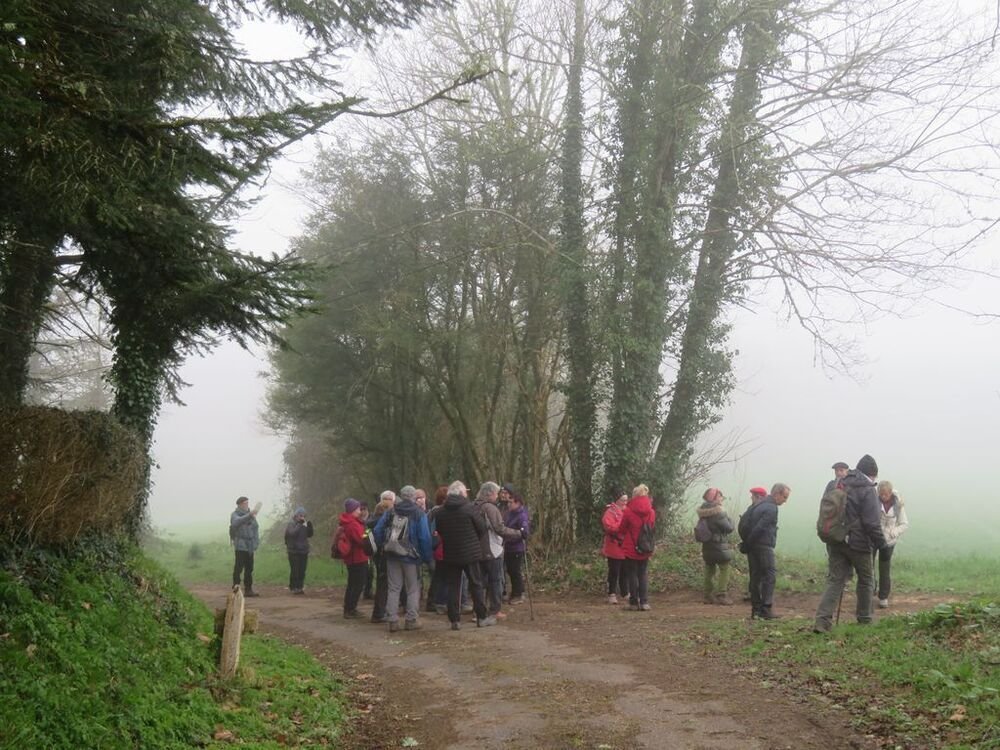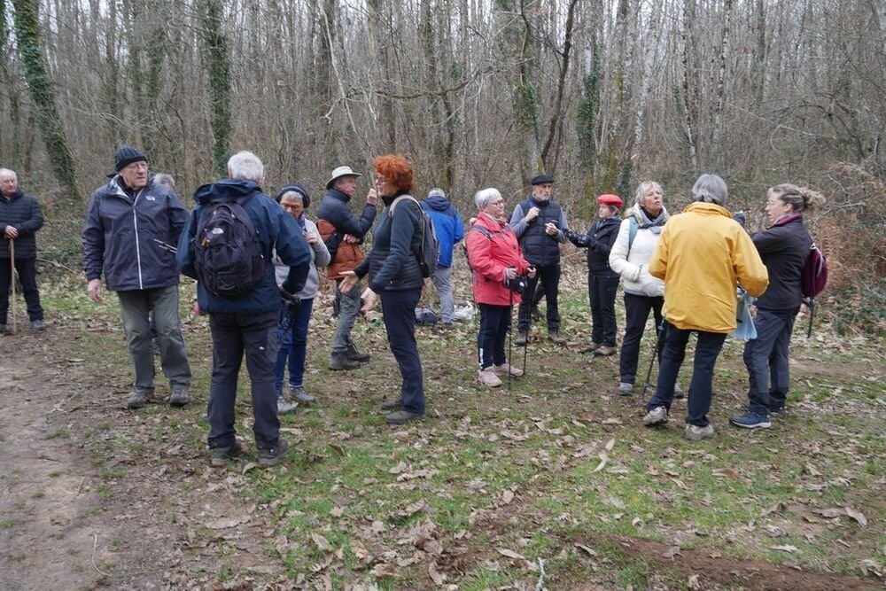 Cette fois-ci c’est Bernadette une adhérente locale qui nous propose un circuit inédit de 10.5 km au départ du bourg. Le froid surprenant de ce matin quasi-printanier ne rebute pas les 29 participants. Tiens pourquoi un effectif aussi important pour notre balade dominicale ? A moins que ce soit le repas convivial promis à son terme qui soit l’élément motivant auprès de nos randonneurs.