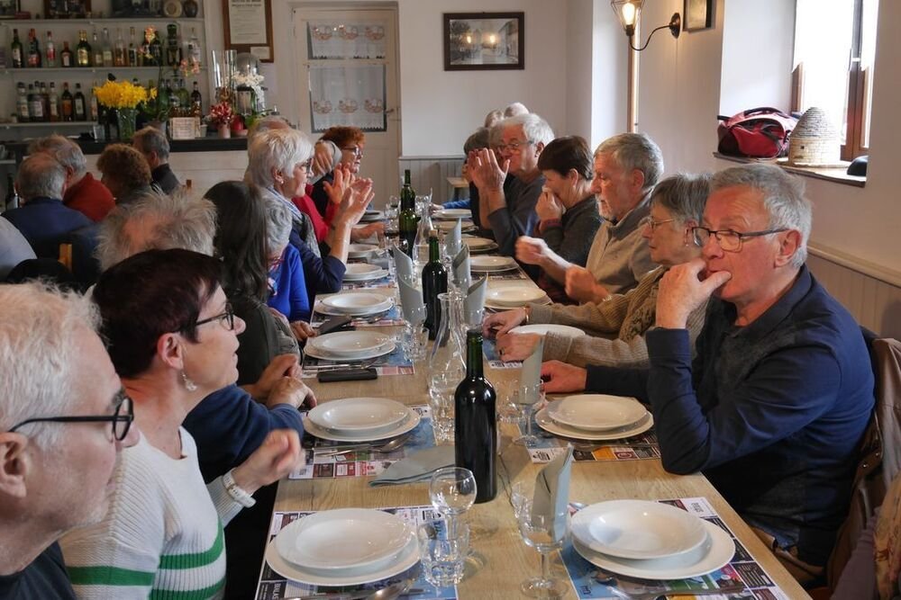 Et le meilleur restait à venir : un petit trajet de 3 kilomètres et voici nos randonneurs confortablement installés au restaurant « chez Jeanne » à Pomarède. De la solide cuisine campagnarde qui tient au corps et revigore les organismes après les efforts de la matinée !