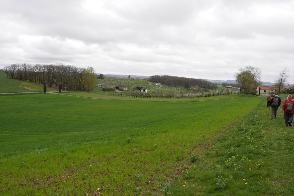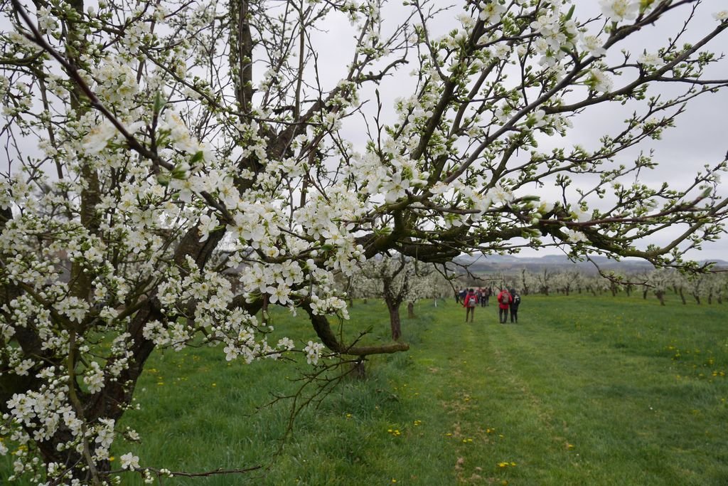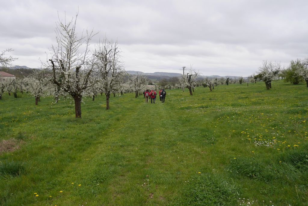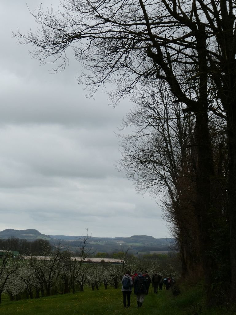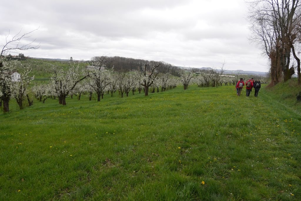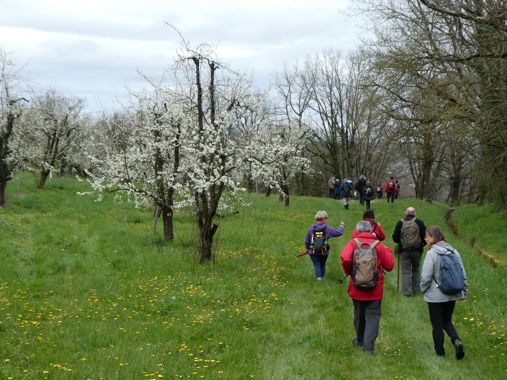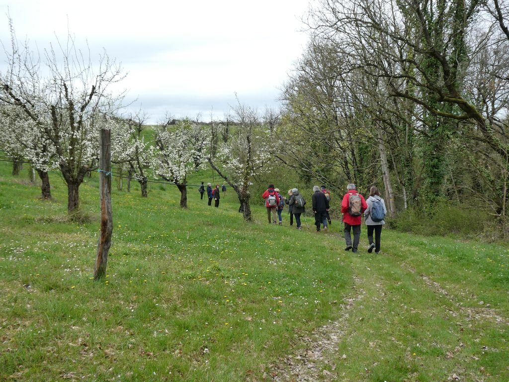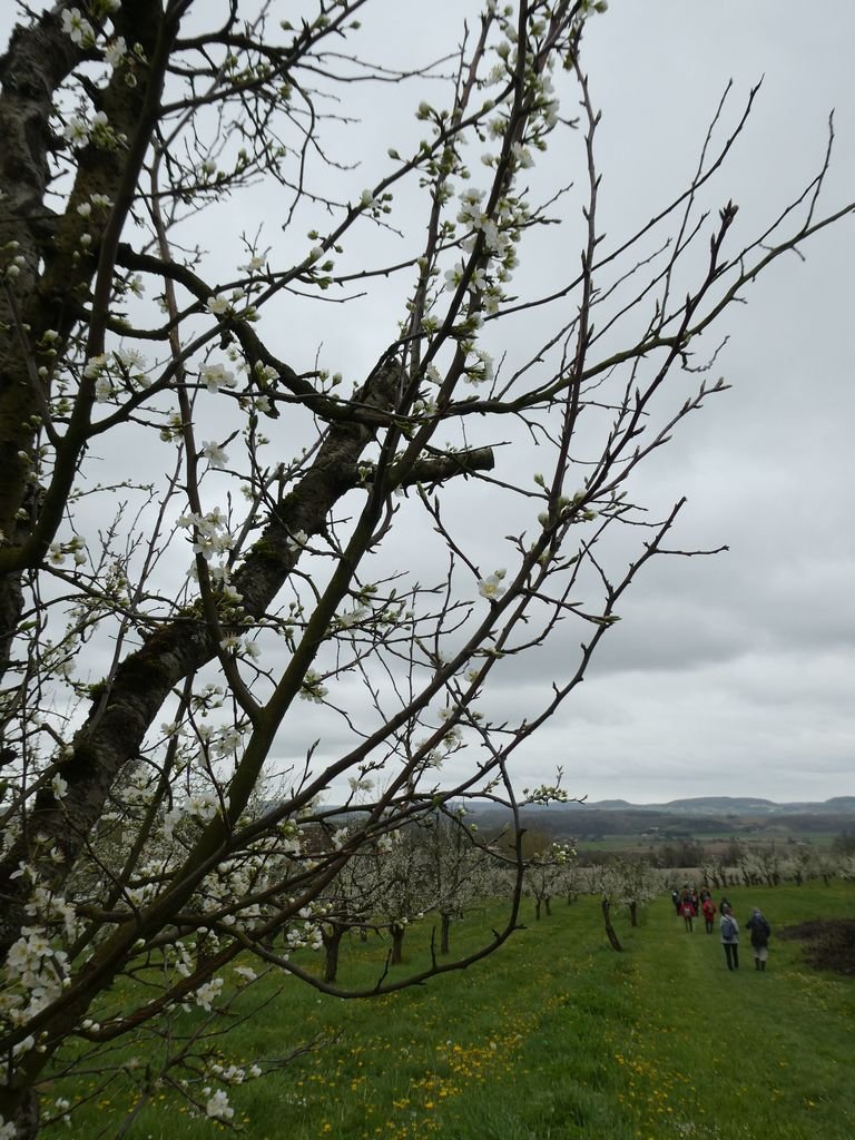 Nous sommes 17 au départ du lieu-dit « Escaffres » sur la commune de Montségur (47), là où poussent les pruniers. Ils sont bien là ! Espérons que leurs fleurs fragiles résisteront à la baisse des températures prévue pour la nuit à venir !