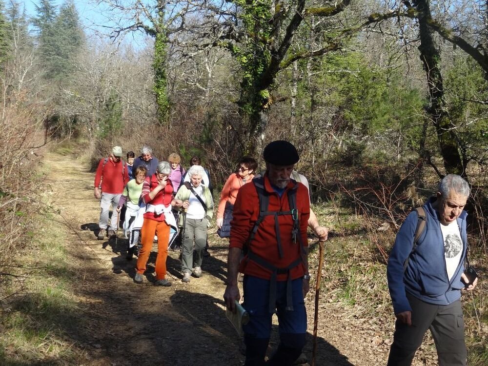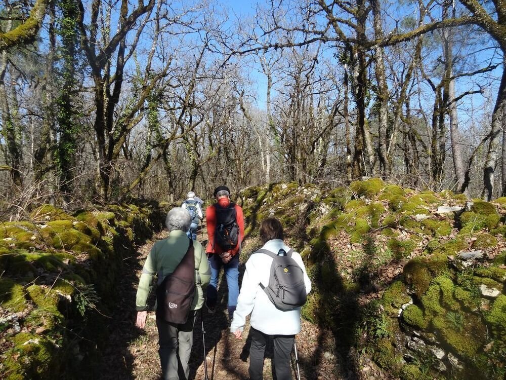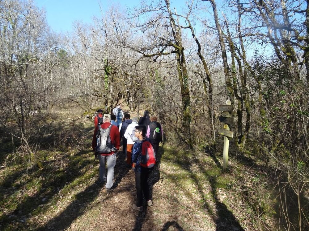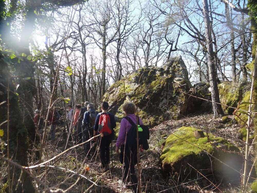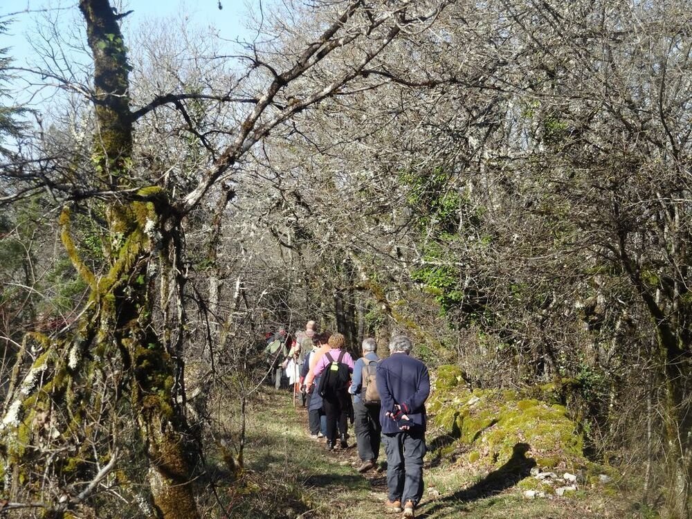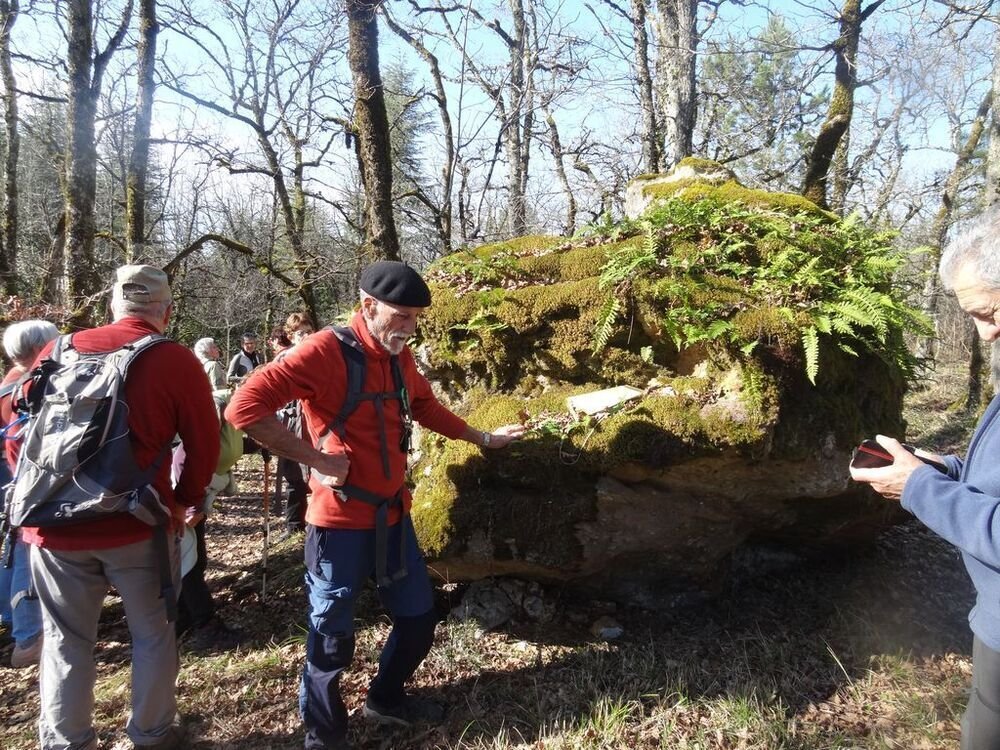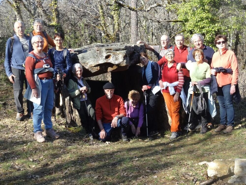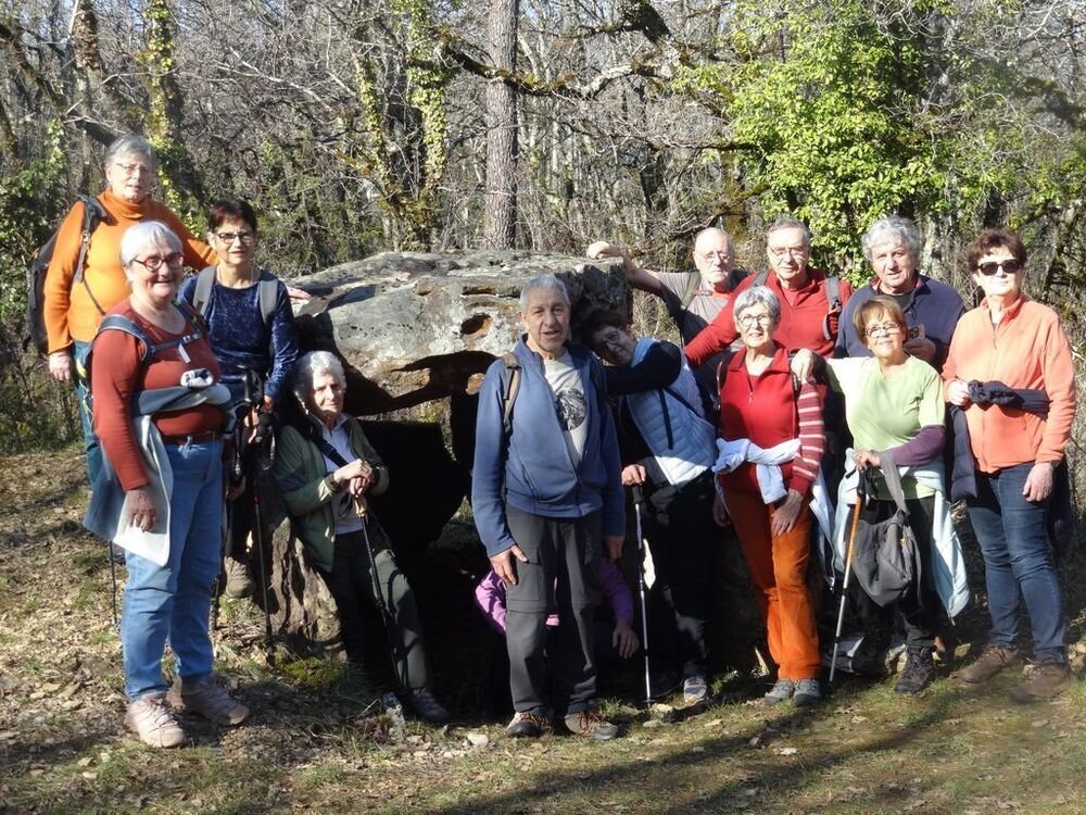 Nous sommes 15, par cette après-midi hivernale ensoleillée, au départ, à proximité de la double gariotte, sur les hauts de Castelfranc pour cheminer sur une partie du circuit des dolmens.