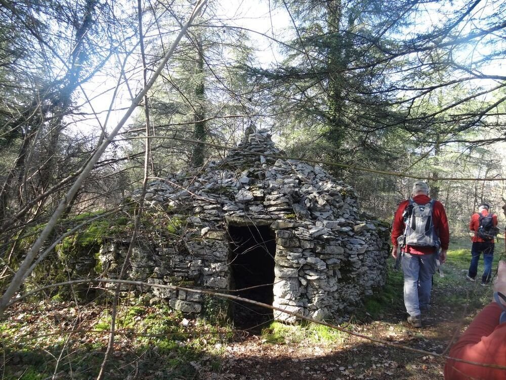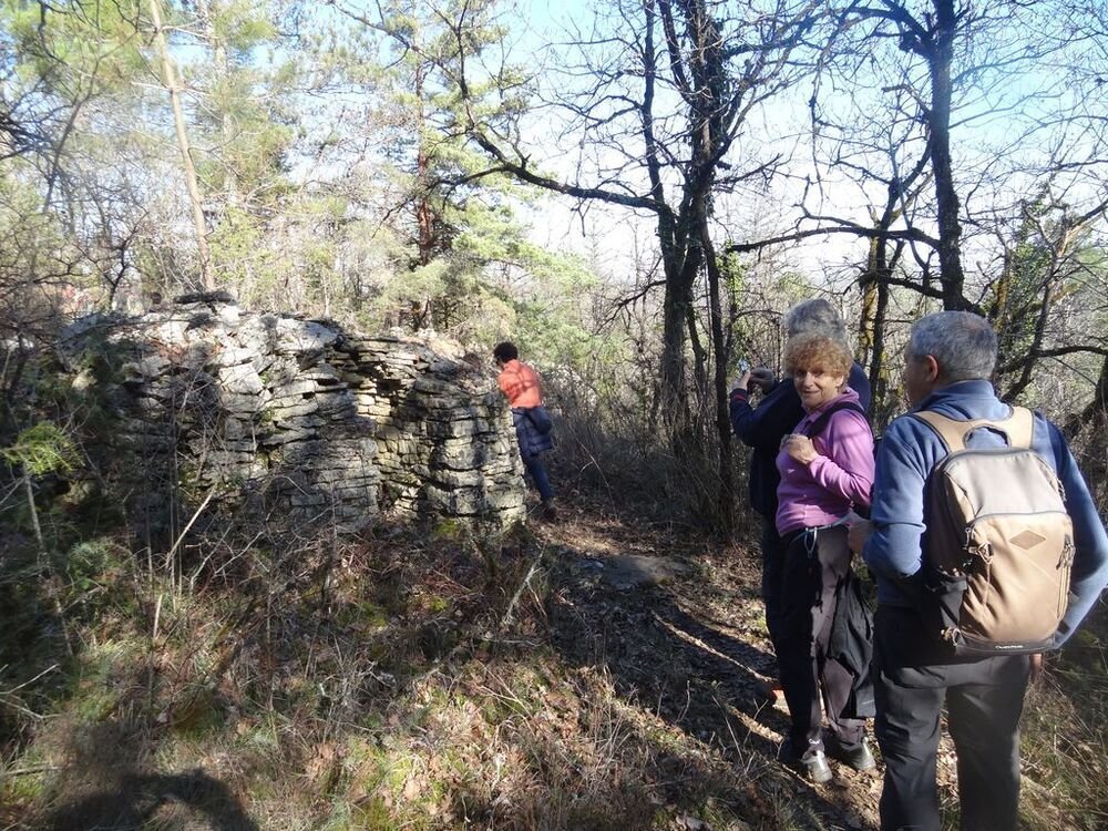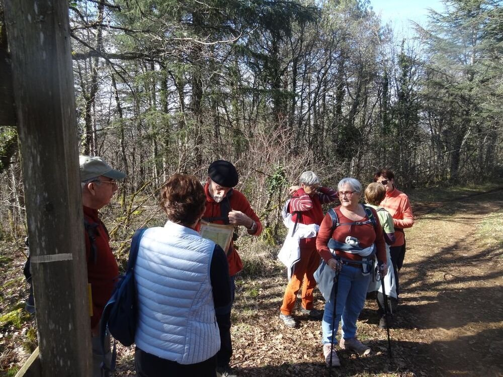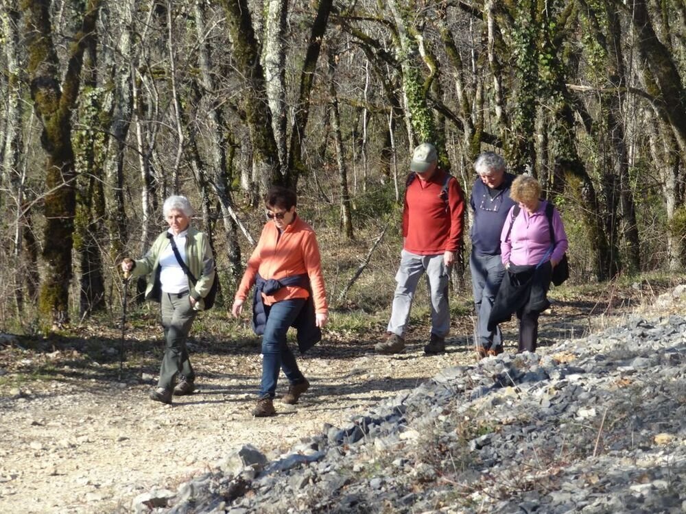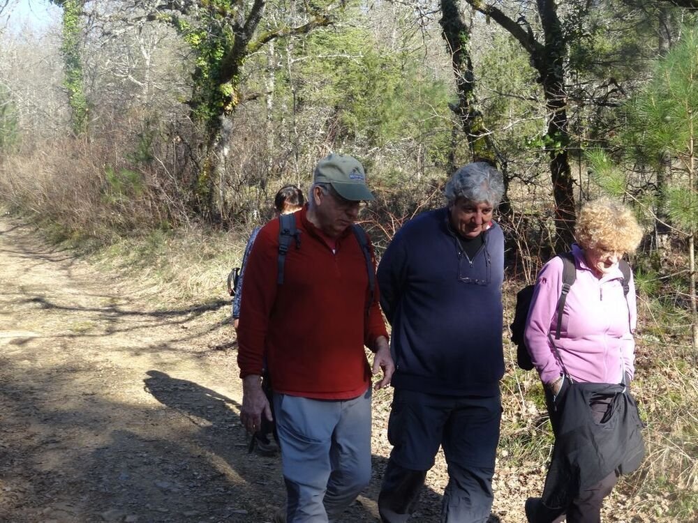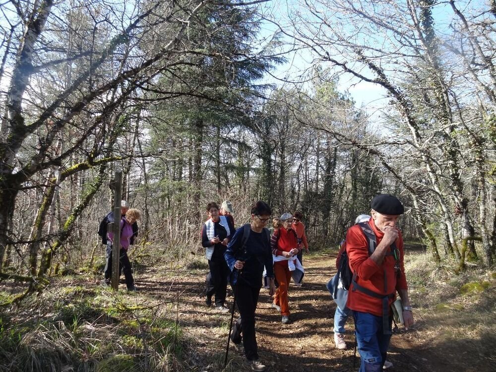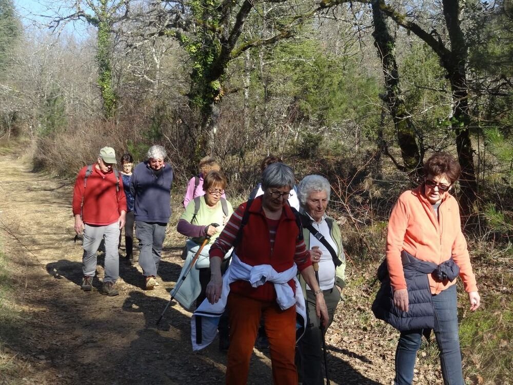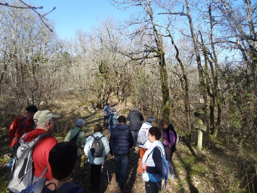 Nous sommes 15, par cette après-midi hivernale ensoleillée, au départ, à proximité de la double gariotte, sur les hauts de Castelfranc pour cheminer sur une partie du circuit des dolmens.