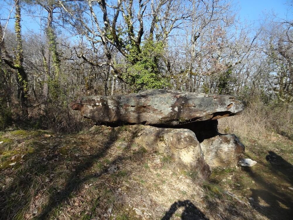 Il était auparavant caché sous un cayrou (amas d’épierrage). Il a fait l’objet d’une restauration. La dalle de fond, qui était abattue derrière la chambre a été relevée. Une grande dalle retrouvée à quelques dizaines de mètres du dolmen a été considérée comme la table et a été replacée. Elle mesure 3,50 m de long pour 2,50 de large, le support droit a 3,10 m de long, le gauche 2,60 m.