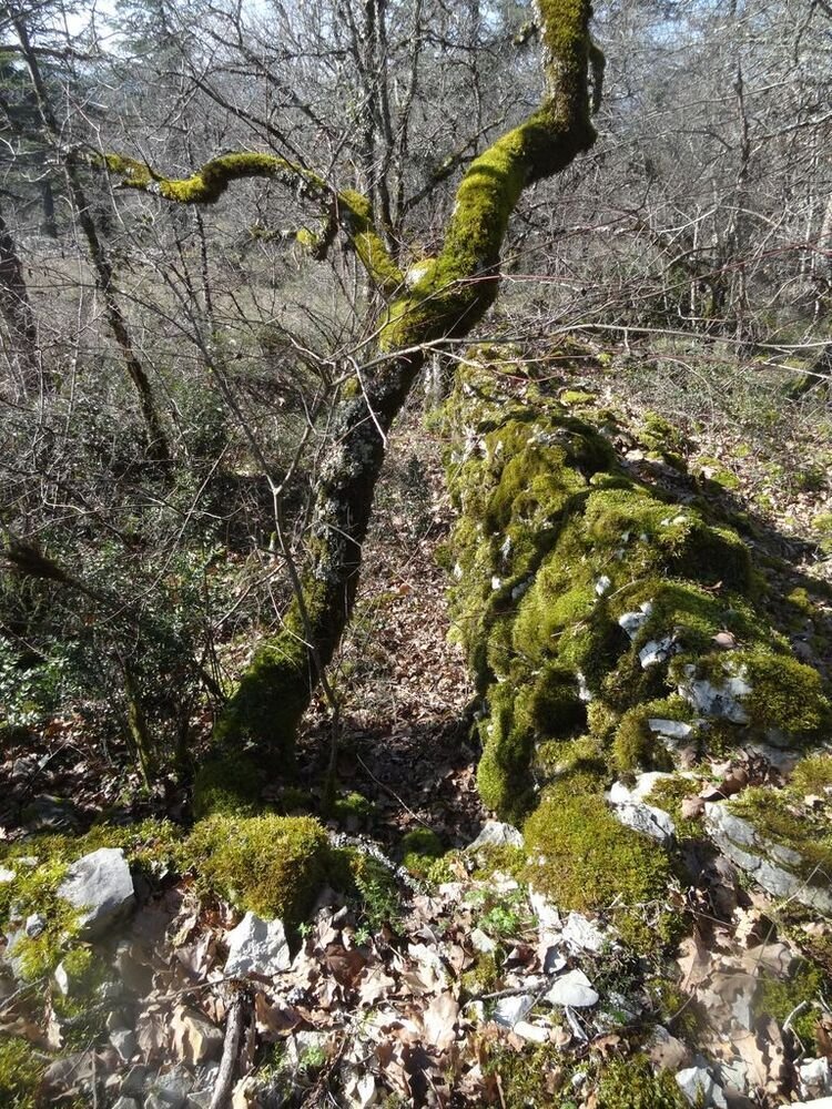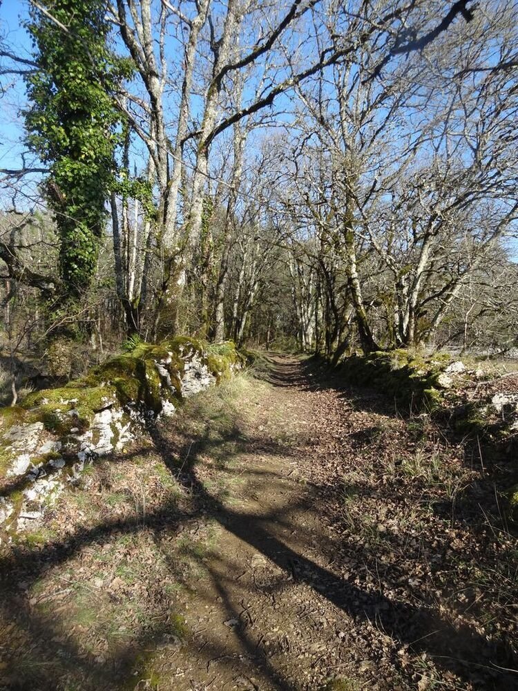 Dès le franchissement de la trouée de la ligne à haute tension, au Pech de Récobert, nous suivons, plein nord une sente bordée de murets en pierre sèche, dévoilant, de ci et de là, des amas de pierre et des gariottes, surplombant la vallée de la Masse, et laissant quelques dolmens peu accessibles aux membres de notre groupe de randonneurs « doux » allergiques aux dénivelés.