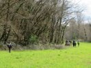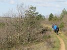 Ciel clair et température piquante, malgré le soleil . . . Mais très vite la marche nous réchauffe et nous nous laissons séduire par les sentiers à couvert, parmi les chênes, puis sur le haut des collines, en plein vent, avec un panorama à 360°, notamment sur Ségos et son clocher mur, Sérignac, Floressas, Château Chambert et jusqu’au repère du château d’eau de Lacapelle Cabanac. Nous passons auprès du camp de loisirs de La Tuque, mais nulle anatomie dénudée n’est venue faire tourner la tête de nos compagnons, qui n’ont pu qu’aller se « rhabiller » !