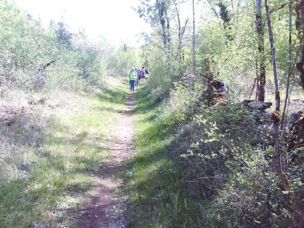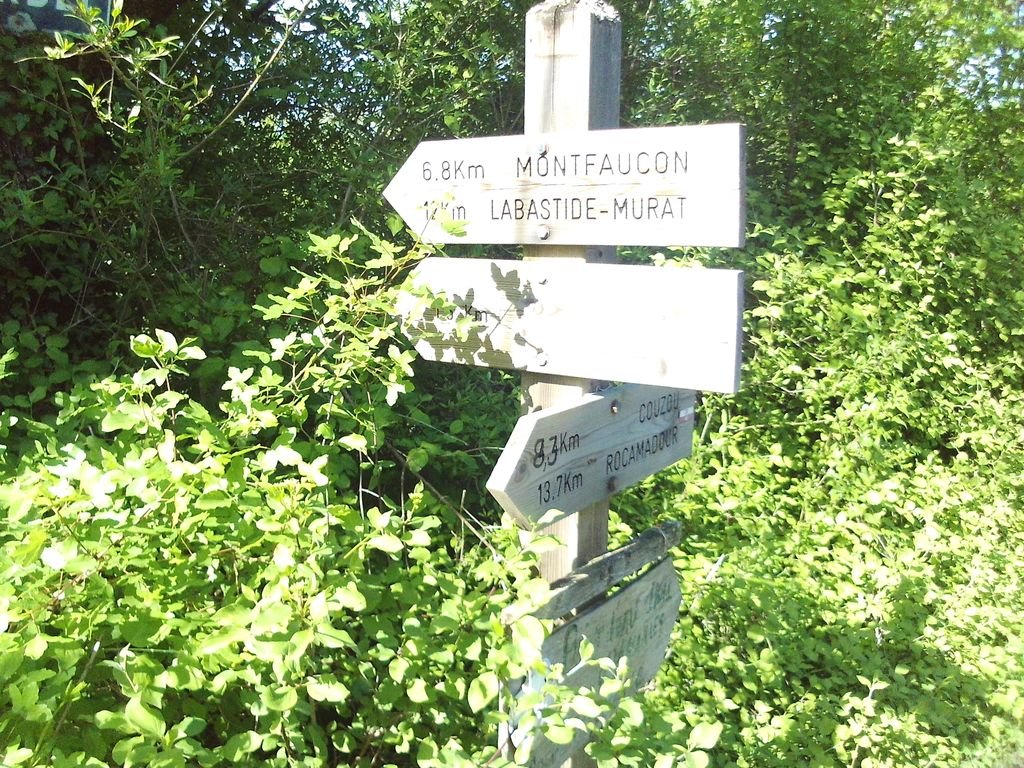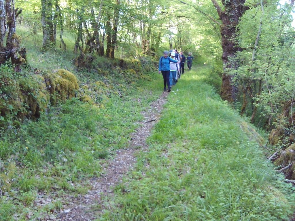 Départ de notre seconde randonnée, sous un soleil dardant ses rayons printaniers, nous prenons, direction sud-ouest, un chemin vicinal qui nous amène au village de vacances de La Faurie, dévoilant un vaste panorama au sud vers Montfaucon et la vallée du Céou.