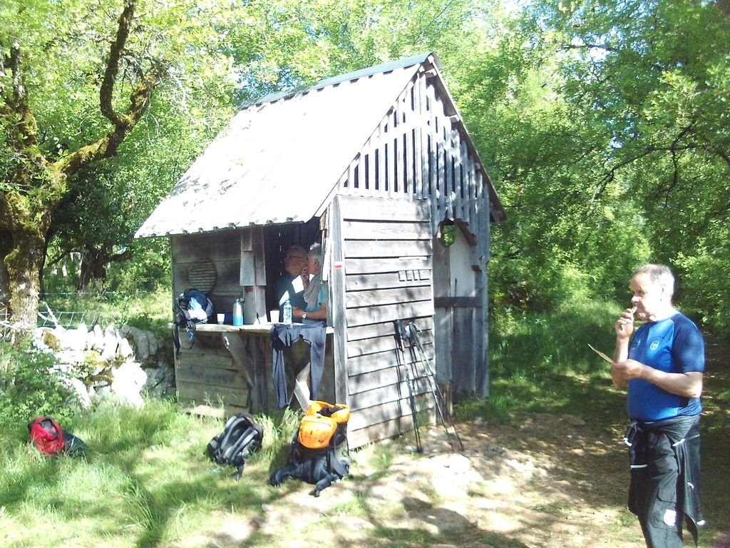 Arrivés sur le plateau, se découvre un panorama majestueux sur le causse de Gramat, au lieu-dit « Versailles », nous arrivons à la jonction avec le GR®46 en faisant un très léger détour pour admirer l’abri des randonneurs jacquaires où nous effectuons une pause-café.