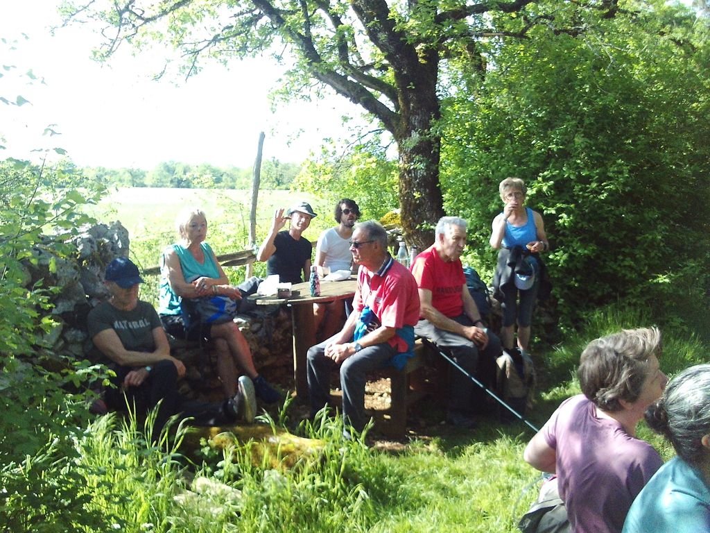 Recherchant l’ombre nous déplaçons légèrement les tables de l’aire de stationnement pour notre pause méridienne et renforcés par deux nouveaux participants, une fois les batteries rechargées, nous déambulons dans le village qui a gardé l’authenticité de ses racines, s’intégrant parfaitement dans le paysage des causses.