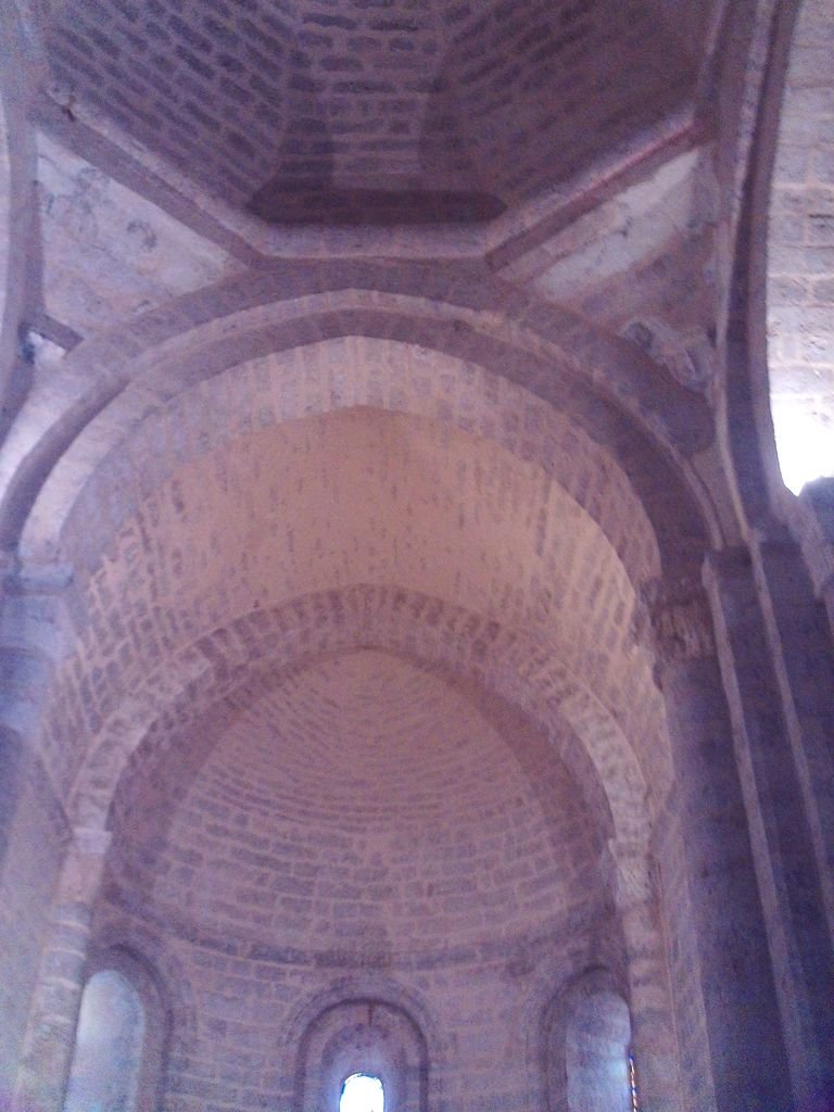En entrant dans l’église, on remarque une nef très courte ayant les mêmes dimensions que les bras du transept, la coupole sur pendentif, le chœur éclairé par 3 fenêtres ménagées dans les contreforts de l’abside dont les arcs extérieurs sont portés par des colonnettes libres.