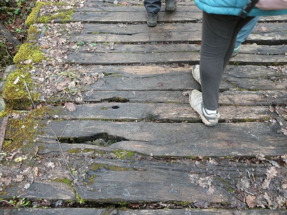 Traversant le ruisseau de l’Ile, sur une seconde passerelle, nous descendons au bord de la rivière pour parcourir le sentier botanique et ses arbres remarquables.