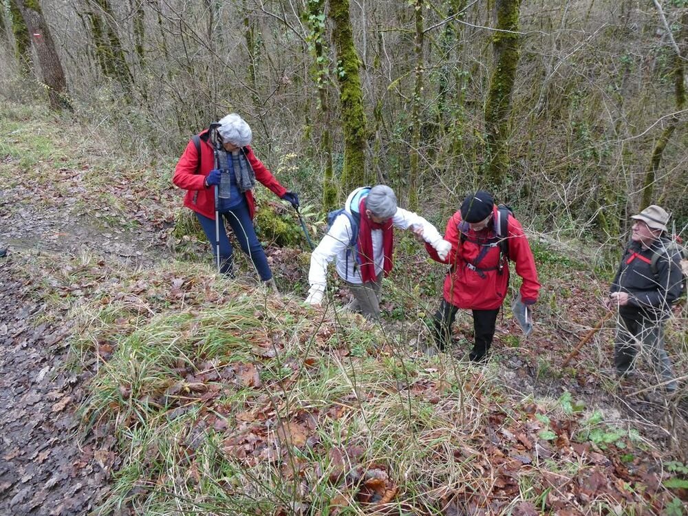 Nous sommes 11, au départ de cette randonnée douce, depuis l’aire de stationnement du collège de Luzech, de 6,020 kms et un dénivelé colossal de 60 m, sous un ciel chargé et une légère pluie annoncée.