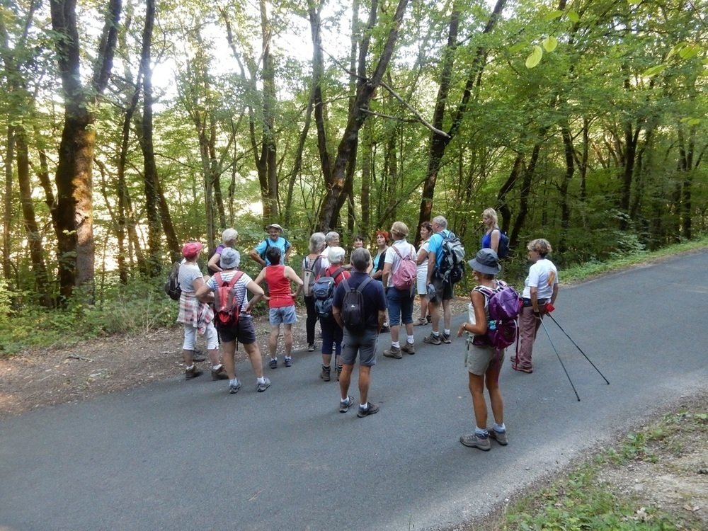 Dès le départ le cap est mis sur Martignac. Mais pas par l’itinéraire classique. C’est par un petit sentier que nous nous dirigeons vers Trébusac. Cet itinéraire est absolument magnifique…et inconnu pratiquement de tous jusqu’à ce matin. Un ravissement pour tous. Puis nous retombons sur notre cheminement classique qui nous amène vers le superbe hameau de Martignac. Nous en profitons pour faire notre habituelle pause-café devant la superbe église.