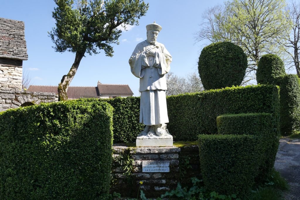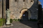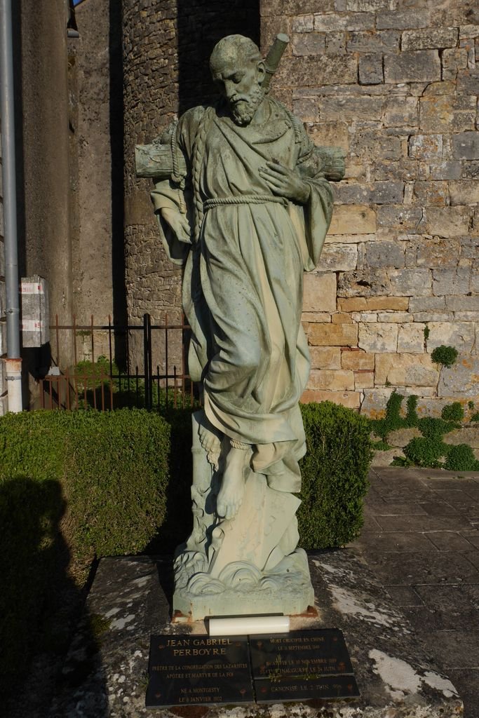 Pas de quoi faire une BD… de Bédé à Montgesty, un joli bourg bien ordonné autour d’une église remarquable devant laquelle siège l’inévitable statue du saint local mort en martyr.