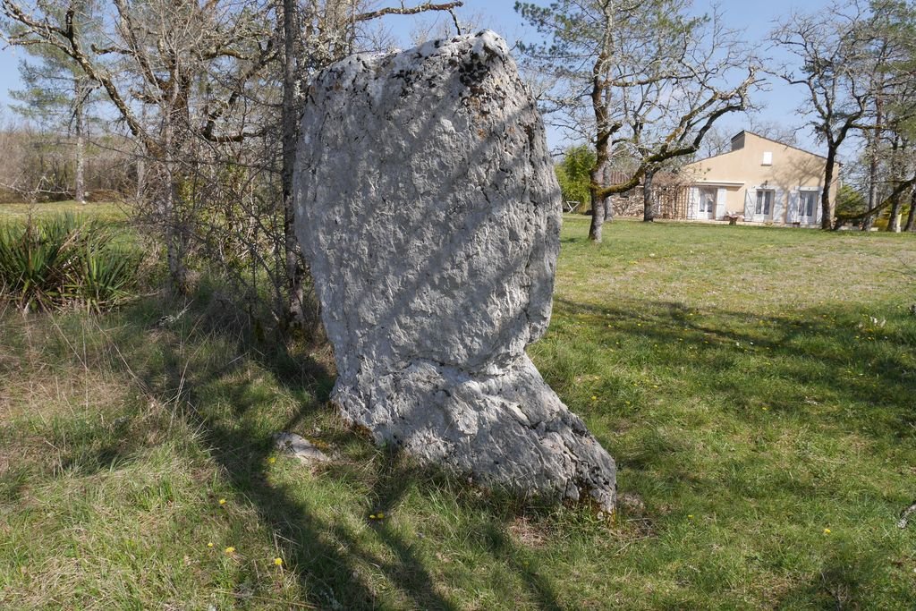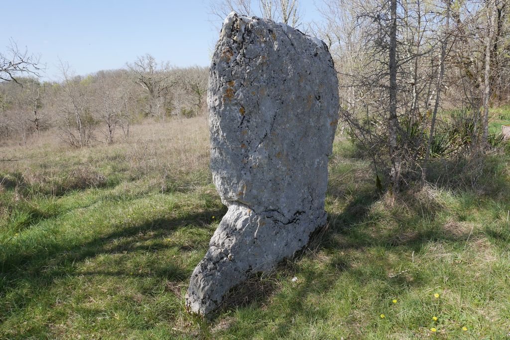 Nous partons plein sud et notre premier point d’intérêt sera le menhir de Courtis, dont l’origine présumée date de 2500 ans avant JC. Il se dresse fièrement au bord de la route : la légende veut qu’on y pratiquait jadis des sacrifices humains.
