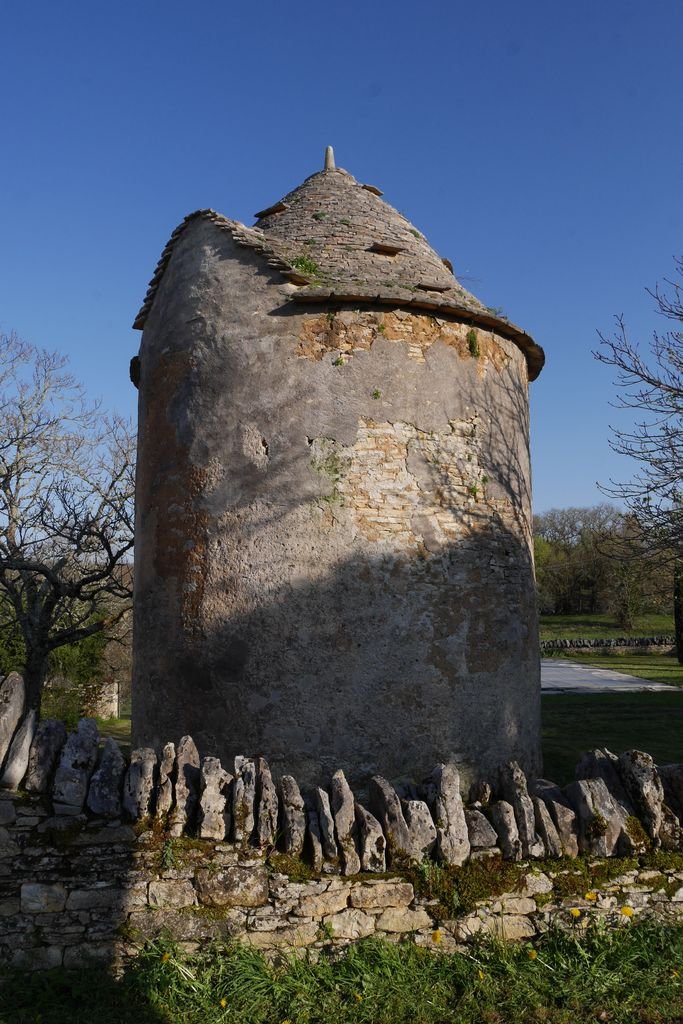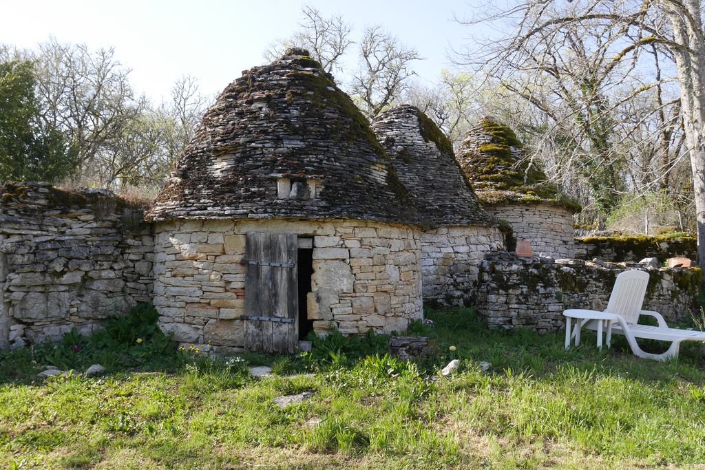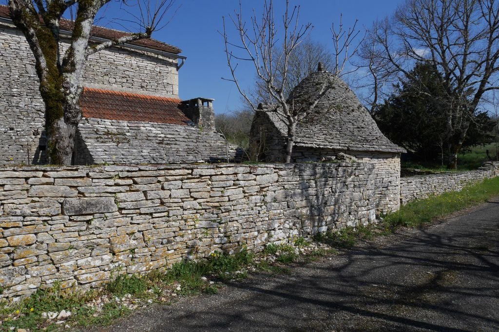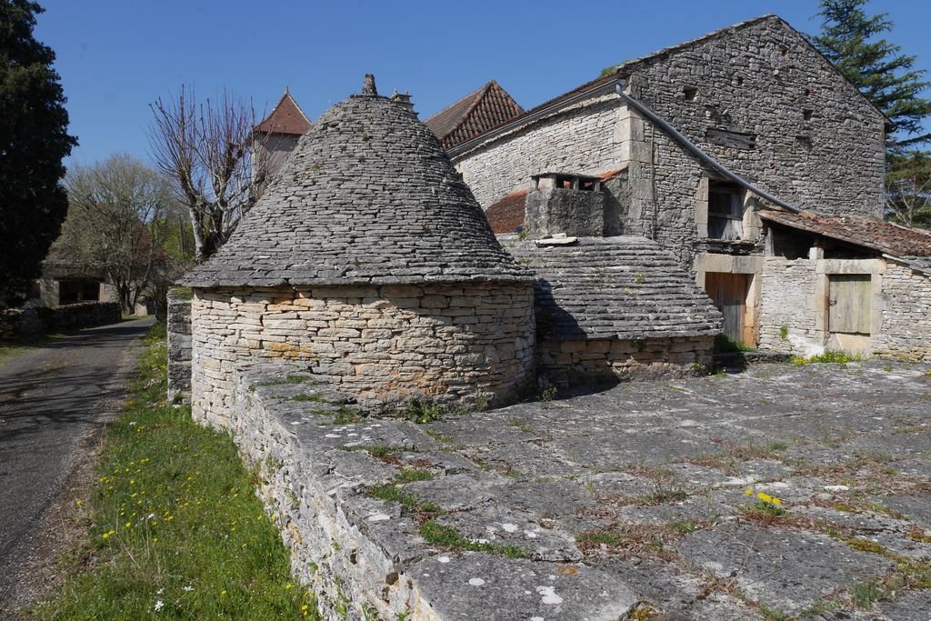 Nous reprenons notre parcours sur des sentiers bordés d’une multitude de murets et descendons dans la Combe Nègre avant d’atteindre le hameau de Vigayral. Trois magnifiques gariottes siègent en sentinelle devant l’ancienne maison et le pigeonnier.