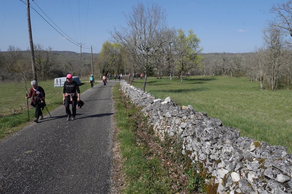 Aujourd’hui les randonneurs sont venus en force puisque nous sommes 33 au départ du bourg de Montgesty sous un soleil printanier : c’est d’ailleurs peut-être ce qui a contribué à atteindre cette affluence de marcheurs !