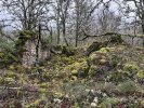 Par un chemin carrossable empierré, nous arrivons au hameau abandonné de Blays dont il ne subsiste que quelques pans de murs et les décombres d’un four banal où nous effectuons une halte café assortie de pâtes de fruit et gâteau sous un ciel gris mais exempt de pluie.