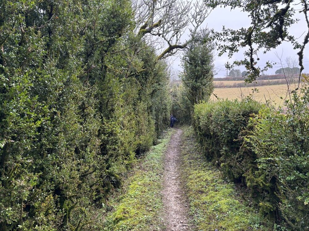 Nous empruntons, parallèlement à la route, la voie verte qui depuis 2019, relie les hameaux isolés de la commune. Ce chemin doux, avec halte possible le long du parcours, tables, bancs, panneaux pédagogiques présentant faune et flore, affirme le caractère respectueux de l’environnement et la prise en compte de la biodiversité.